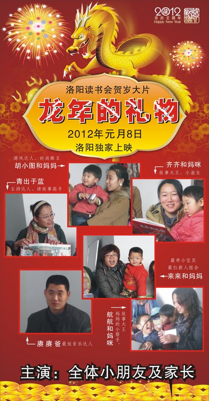 ![]() 大片海报抢先看 ![]() 贺岁大片主演:全体小朋友及家长 主持人:青出于蓝(主持达人、讲故事高手) 游戏主持:胡小图和图图妈(游戏达人、时尚麻豆) 快板表演:来来和来来妈(最乖小宝贝、最红双人组) 红衣服的红故事主讲:齐齐妈(故事大王、漂亮小淑女) 航航妈(故事大王、最爱帮妈妈的小帅哥) 故事音效:赓赓爸(最炫音乐达人) 那咚咚呛,咚咚呛是相当好听了。 走红毯喽 ![]() 看这一个一个小明星那真是相当有大腕气势了 ![]() 帅哥美女云集啊 8号的早上,一众小明星们是闪亮登场啊,那阵势跟好莱坞走毯是不相上下啊。 小应景我变身大明星 读书会是讲龙年的礼物,妈妈给我穿上一件带龙的衣服应应景,可是,她低估了我的智商了呢,别看我年纪小,我可是有潜力的明星哦。看我如何给妈妈一个大惊喜。 妈妈给我穿带龙的衣服,快上场之前我就哭,妈妈只好抱着我来表演,哈哈哈,这就是关键喽。(看,我手拿音乐达人赓赓爸的乐器之一里的咚咚) 妈妈给小朋友们猜迷语,还说答案就是我们今天要讲的故事里的主人公。 哈哈,小哥哥,小姐姐们,答案就在我身上呢,看到没,我用手指指给你们看哦。哦。。。。。看我的衣服哦。 我聪明吧?我有明星潜质吧。我从小应景变身大明星喽啊。 讲故事喽 队长讲的是龙民俗,是冬冬枪呀冬冬枪 齐齐妈和航航妈在讲黑龙江的传说,冬冬枪啊冬冬枪 看我们的故事音效躲在角落里,多低调啊,是冬冬枪啊冬冬枪。 讲完故事我们做游戏 游戏主持就是传说中的时尚麻豆,游戏达人,胡图图母子两啊。 看小朋友们在举手参加自我介绍呢。 我坐坐好,我跳跳舞,我还带着纸尿裤 ![]() ![]() 游戏开始了,小朋友们蹲蹲好,我们一起玩放鞭炮的游戏。 咦?妈妈,这位阿姨在干吗? 我又发现一个好玩的游戏,踢键子喽 做完游戏我们做手工,做串鞭炮放喽 妈妈们带着我们一起做鞭炮,多认真啊。 小朋友们和妈妈们一起做,真热闹啊。 看看我们的作品吧 我的作品是妈妈先做好的,因为我太小了,现场做不了 音乐达人叔叔也做好一串呢。做好之后我们一起放,看,子园小哥哥演得多逼真,捂着小耳朵呢。 大片演完了,来张全家福吧 花絮,我和哥哥谁爱吃 和哥哥一起分享图妈给我脆脆沙,再吃一块子园爸爸给的毛毛虫糖 吃得不过瘾,我是小面包,小饼干一样都不少。 龙年快到啦,叔叔阿姨哥哥姐姐们,我提前祝你们龙年大吉。 本作品未经作者许可不得转载,转载请征求作者意见。擅自转载使用,将保留追究其法律责任的权利! 评分记录