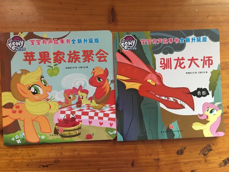 ![]() 女儿最近疯狂地迷恋看电视,一说看电视,整个人感觉都不一样,兴奋无比。如宝奶所说,女儿看电视不白看,模仿得很快。但是我也发现一个问题,就是女儿看电视时间总是很长,一旦不给看,整个人瞬间变得急躁,做什么都没有心情似的。除了担心影响她的视力以外,我最怕影响她的心智。所以,这也是我比较纠结的一个原因。好的动画片确实能给孩子带来快乐和好的影响,这是无疑的。但是市面上的动画片多得让人眼花缭乱,我在家尚且能稍微控制一下,我不在家的时候吧,大家都知道,孩子会熊奶奶,所谓的隔辈亲就在这里体现出来了。所以,相比较之下,我更愿意给女儿多看书。虽然视觉上的震撼可能没有电视那么大,但是好的绘本同样魅力无限,比如《小马宝莉宝宝有声故事书全新升级珍藏版》,女儿对这套书的喜爱并不亚于动画片。 培养孩子的好品格是我们一直在做的事,但怎样去培养也是我们一直在思考的问题。在看到《小马宝莉宝宝有声故事书全新升级珍藏版》之后,我们一直在思考的问题终于得到了解答。那就是通过好的故事,让孩子在阅读中,能够受到潜移默化的影响,从而培养好品格。在我们拿到两本试读上就可以很清晰地看到《驯龙大师》的封面上,从巨龙喷出的黑烟上写着“勇敢”,《苹果家族聚会》的封面上,从树上吊下来一个苹果写着“珍惜”,我们可以很清楚地知道读完这本书,能带给孩子的是什么样的好品格,这无疑是我们亲子阅读的不二选择。