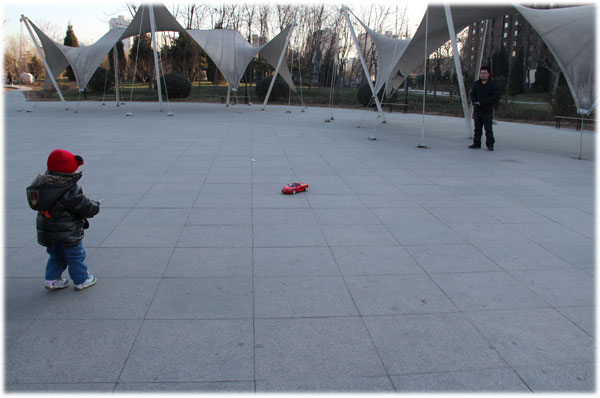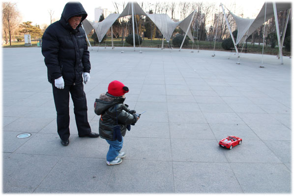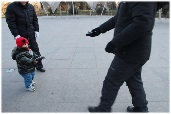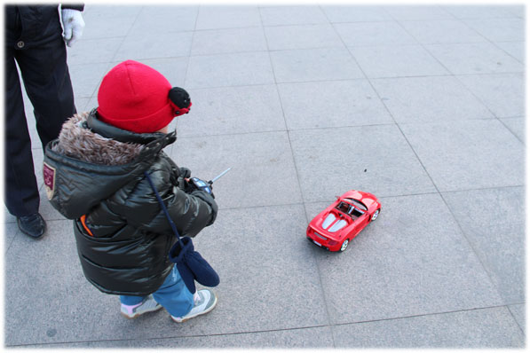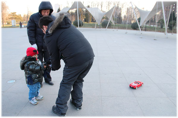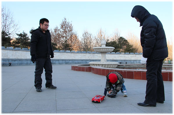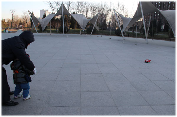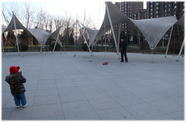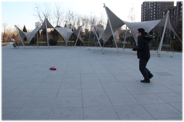 记得我刚怀孕不久时老公就曾畅想过,如果生的是儿子,那他就要给孩子买好多的遥控汽车、遥控飞机……他做到了!唉,我家现在已经有两架遥控飞机、两辆遥控汽车了,若不是我强加阻拦,还会再多个遥控船呢!孩子他爹心态年轻,正好可以借着孩子的名,给自己买遥控小汽车找个合适的理由~~ ![]() 刚买回来时,只在屋里试过两下,能跑就放心了,却一直没时间和机会出去‘试驾’。上次带秃秃去公园开越野时,顺便把遥控汽车和遥控飞机都带上了,爷爷陪孩子开车,老公就自己拿出小汽车来遥控一番~~还别说,这法拉利是好用啊,嗖嗖的跑得特别快,即使偶尔撞倒墙,也没看见什么伤,掉过头来继续前进……