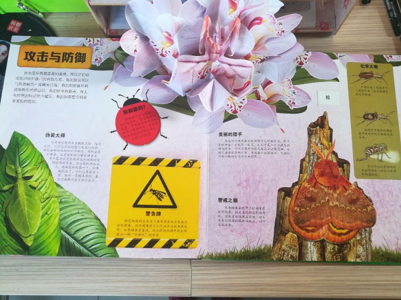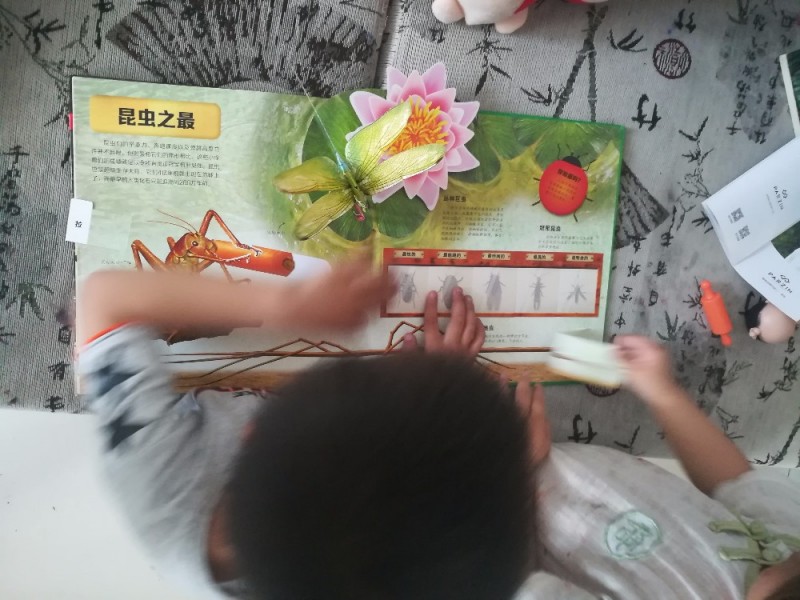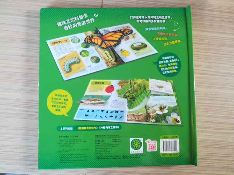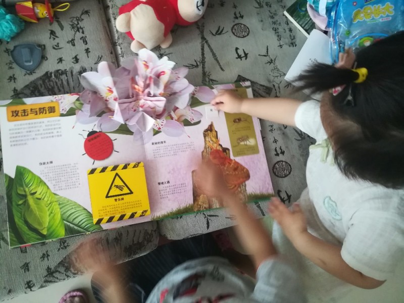 这本《奇趣昆虫立体书》是上个月群分享得到的,非常感谢宝宝地带与乐乐趣给予这次机会,孩子们是非常的喜欢的。刚收到这本书的时候,我拆开翻看的,非常的精美,刚好那会快要下班了,有同事到办公室送东西来的,一下子就被这本书给吸引了,问我这是什么?我告诉他这是立体书,同事直呼这本书实在是太过于精美了,上面的昆虫,有的真的看起来很想花朵,告诉同事是昆虫,哈哈,对方一脸的蒙圈,直说没有看出来,哈哈,觉得十分的有趣,在这看了好一会。