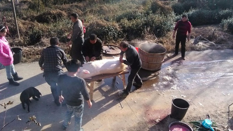 我们那里这样杀猪还是要过年的时候,旁边的人都来帮忙