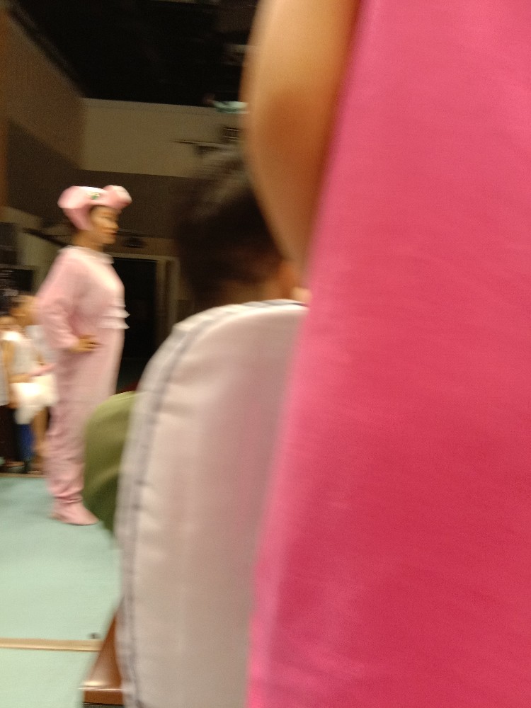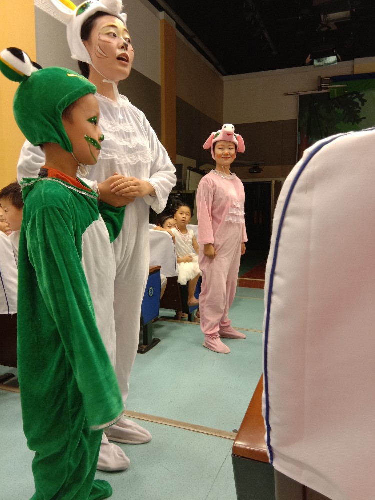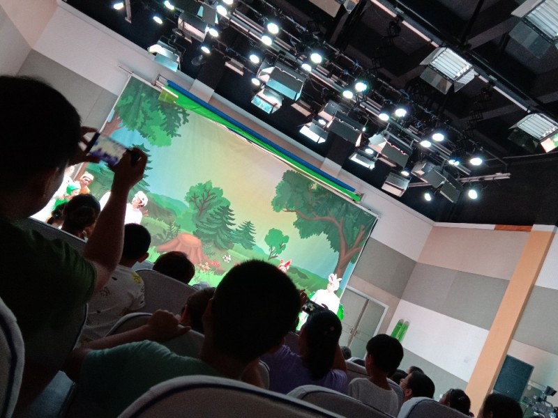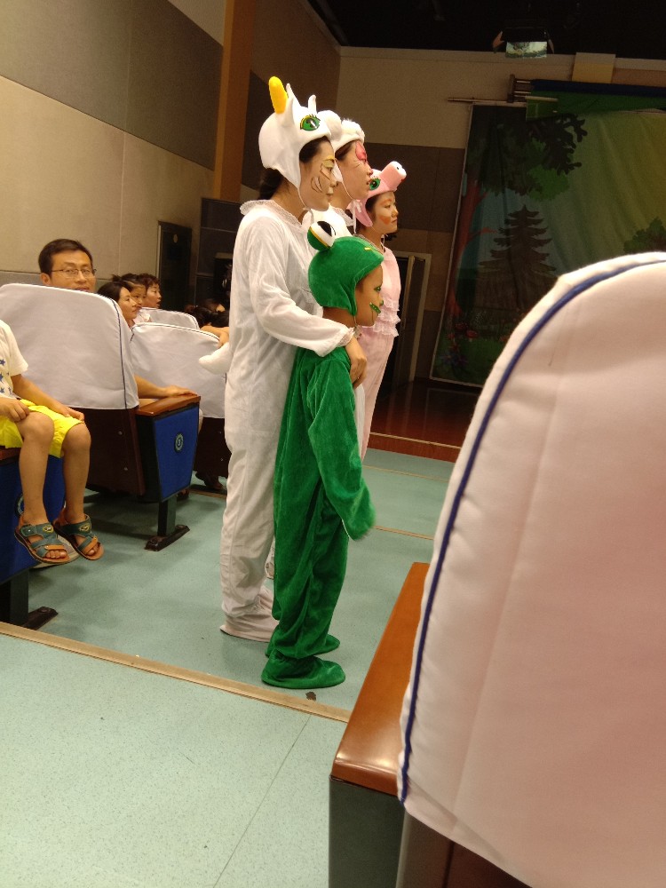 这个时间还是赶得很好的,一路上都挺畅通的,到了地点,还遇见好多带着孩子的家长呢,我一看就知道大家都是一起的,就跟着人家一起走进剧场,这个地方是用学校的地方,不算大,就是一个小小的礼堂,外面很热,刚进去的时候觉得还挺凉快的,可是进来以后,身上还有热气,还是觉得很热。