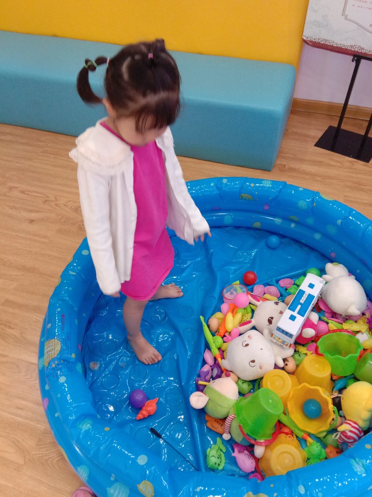 我带着孩子出去玩的时候,看见好多店铺的门口就放着这样的泳池让孩子们进去玩,人家也是不装水,把小玩具都放进去,这样孩子在里面玩,大人可以在旁边休息,这个想法真是不错,而且孩子特别喜欢这样的场地玩耍呢。 今天遇见的这个是蓝色的圆形泳池,我家买的是方形的,确实没有圆形的好看省地方呢,要是早点发现有卖圆形游泳池的话,自己也会选择圆形的游泳池的,这个颜色是蓝色的,很漂亮,里面放了好多的小玩具,这些都是挺吸引孩子的,我家的玩具要是这么放的,估计放不下,不过每家的玩具类型都不太一样,孩子总是喜欢别人家的玩具。