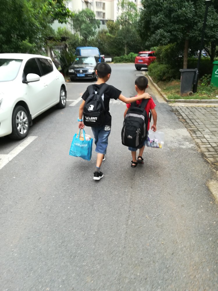 弟弟背着那么大的书包