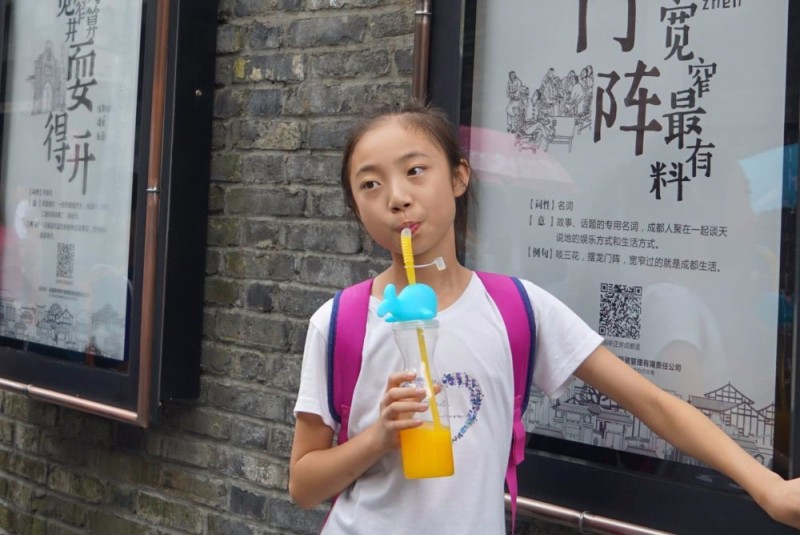 火车经过21个小时的旅途,早上睡醒收拾妥当,吃过早餐,8点39分,我们下车啦。 打车到我们预定的民宿,是个普通的住宅小区,时间太早还没到入住时间,跟房主联系后,把行李先放在大门口的保安室里,我们先去成都著名的宽窄巷子逛逛。当初选择这家民宿,一是因为有电梯,我们女人孩子的,搬行李方便啊;二是住得下我们六个人,哈;三是离宽窄巷子非常近,只有500米,步行可去,而且我们租了车,也是在附近取车,都很便利。 宽窄巷子里的人熙熙攘攘,但不到拥挤的程度,感受还可以,两旁都是各种各样的特色小店,无论是花团锦簇的墙壁还是有个性的门脸招牌,都透着一种悠闲的小情调。我们一路走着看着,能玩的店就进去玩一玩,写写毛笔字玩玩竹蜻蜓拼拼魔方,渴了,买杯鲜榨的果汁,开心自在。