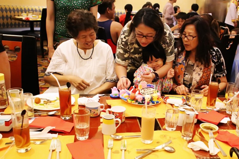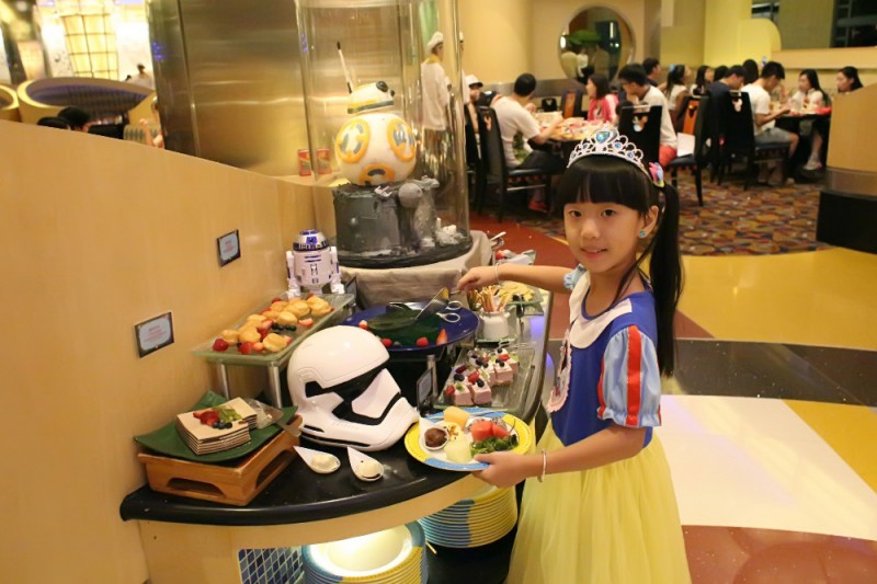 ![]() 2016年中秋节有三天假期,都安排在玩迪士尼乐园。第一天是到香港,直接去乐园,因为是买的两天的门票,所以第一天先玩了一半。晚上住在愉景湾酒店。因为中秋节迪士尼的酒店还是有点贵了。第二天继续游玩迪士尼,晚上就带姗儿来到好莱坞酒店的米奇厨师餐厅用餐~ ![]() 当时在网上提前订餐有优惠,不用提前支付款项,可以到官网上登记信息即可预定。网站链接如下,当时预定还能有每人50元的餐费优惠~ https://www.hongkongdisneyland.com/zh-cn/hotels/disneys-hollywood-hotel/ 这是今年最新的价格表,比我们当时价格差不多,如果是每人优惠50元,其实酒店的自助餐价格非常优惠了,在迪士尼里面一块小面包就要几十元,一个盒饭都是一百元以上的,所以这个自助餐才两百多一个人是非常划算的~ ![]() 自助餐的种类还是非常丰盛的,刚刚进去,姗儿都应接不暇~ ![]() 姗儿超喜欢这个巧克力瀑布~ ![]() 其实姗儿不是想吃这个巧克力,而是想去玩这个巧克力瀑布~ ![]() 这个是将旁边的一些糖果放到巧克力瀑布上,这样糖果外面就会有一层巧克力包裹起来了~ ![]() 这个是自己煮的鱼蛋青菜类~ ![]() 这里是雪糕区域~ ![]() 虽然不喜欢让姗儿吃雪糕的,但是看到这么诱人的雪糕筒还是忍不住想让姗儿去尝试一下~ ![]() 这是一些寿司等小食~ ![]() 可以看到姗儿手中的冰激凌真是只有一点点~ ![]() 这是日式区域~ ![]() 姗儿弄了一点寿司~ ![]() 这是我们第一批拿回来的晚餐,大多数都是甜点,因为这些甜点太诱人了~ ![]() 回到座位上,先把冰激凌解决了~ ![]() 宝贝见到这么多美食也是开心得不得了~ ![]() 我们去的时候乐园已经早早准备了万圣节的活动,所以很多食材也弄成了和万圣节有关~ ![]() 姗儿吃完了继续去拿喜欢的菜肴~ ![]() 看到有一桌给孩子庆祝生日,当时觉得这个孩子好幸福啊,在这里搞一次生日会至少要花个一万多~ ![]() 姗儿属于比较节约的孩子,每次拿东西都会按照自己的食量去拿,虽然只有一点点,但是也不喜欢浪费~ ![]() 不过这样的小食更加符合孩子的口味~ ![]() 这些大鱼大肉应该算价格比较贵的菜肴,但是我们都没有吃~ ![]() 酒店里面的光线不是填好,尤其是食材下面的光线很强的,但是外面的光又比较昏暗~ ![]() 这些美食对于姗姗来说真是看看就算了~ ![]() 看丫头夹了半天也只有这么几块~ ![]() 这个是芝士蛋糕,一小块蛋糕在迪士尼乐园已经要卖到50了,想想这里可以随便吃真是觉得划算啊~ ![]() 自助餐厅随处可以见到万圣节的可爱布置~ ![]() 这些就是小甜点区域了` ![]() 姗妈开始拿了许多各式各样的小甜点,发现吃完都不用吃菜了~ ![]() 这些是家常菜区域~ ![]() 其实每样菜的味道都特别正宗,广东菜在全国的菜系中算非常好吃的~ ![]() 还有一些水果可以吃~ ![]() 有些是需要加工的菜有厨师会在那边为客人服务~ ![]() ![]() 我们吃的是自助晚餐,会有一些海鲜类,可惜我们都不怎么吃海鲜,喜欢吃海鲜的朋友过来真是超值啊~ ![]() 还有很多蔬菜和水果沙拉~ ![]() 这些就是面食区域,小包子也是很可爱的~ ![]() 这里还有一个星球大战的主题区~ ![]() 呵呵,其实也就是摆放了两个关于星球大战的玩具~ ![]() 这两个玩具只可观看,是不能食用的~ ![]() ![]() 这就是姗儿新拿的食物,是不是像猫食~ ![]() 最后逛一圈,准备回座位吃饭~ ![]() 还有一些PIZZA饼,如果是在乐园,姗姗肯定要单点这个PIZZA了~ ![]() 这种是迪士尼专用的碗,乐园有卖的,后来我们买了一个回家~ ![]() 在餐厅用餐所有的座位都是工作人员指定好的~ ![]() 这个米奇头座椅造型也很特别~ ![]() 姗儿吃完后说下次还想再去吃一次,的确这样吸引孩子的餐厅哪个孩子不喜欢呢~