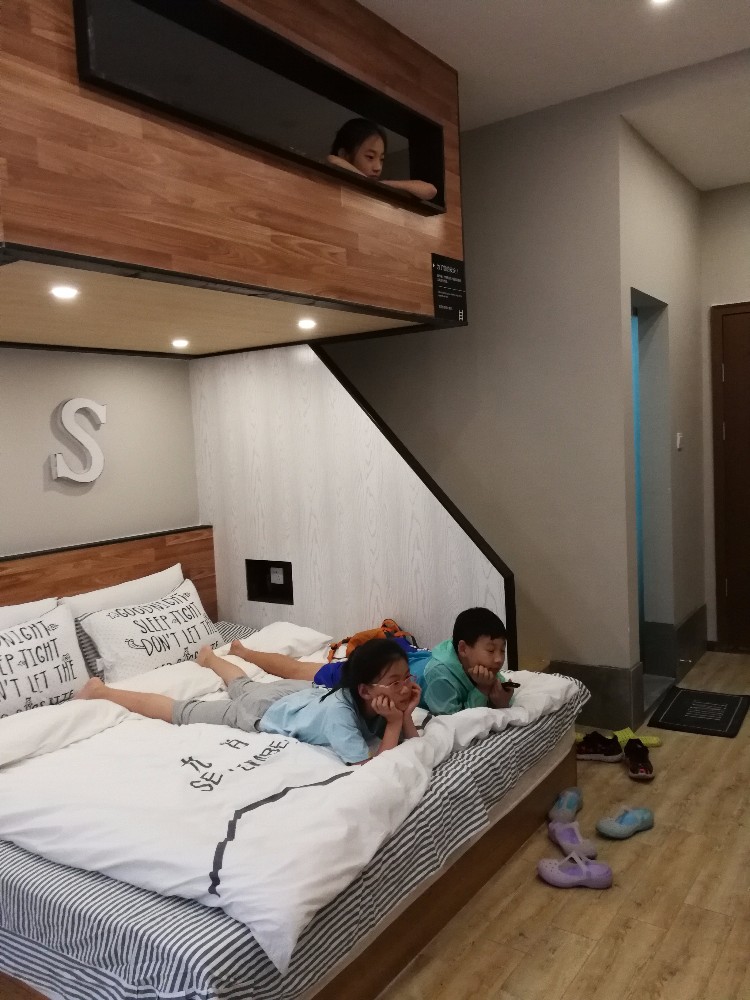 傍晚,我们到达预定的九月山间酒店,很有特色的酒店,大堂、房间都比较有特点,孩子们一进屋,高兴地不行,电视赶紧看起来。这里,海拔达到3800,一下子这么高,大家都觉得头有点昏昏沉沉的,稍作休息之后,出来觅食吧,本想简单点就在酒店吃,谁知老板说卖完了,只能出去找啦。还好,出门一条街都是饭店,店面布置还都挺有特色,像这家,居然挂着白浅和夜华的照片,三生三世十里桃花都来啦。这边的特色吃食就是牦牛火锅,品尝一下吧,要了一份牦牛肉火锅,除了肉还有很多菜,按锅卖的,还点了一份烤羊排,味道不错,就是量有点少,孩子们没吃够,又要了一份。对了,还抿了两口小酒,西西爸爸说,这个酒有对抗高反的作用,哈哈,不知是心理作用还是真的有用,反正觉得脑袋不那么昏沉了