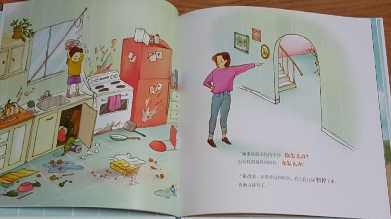 在育儿问题上,相信很多妈妈都有自己的方法,不过最近的《正面管教》着实让我们很受益。其实在与孩子相处的过程中,孩子的一些行为是我们大人所无法理解的,那么如何去处理这种亲子关系,如何去化解亲子之间的矛盾是妈妈们真的应该学习的。让我印象最为深刻的是,自从女儿6岁开始,就有了一点叛逆的苗头,很多是偶我说东,她非得西,我软硬兼施,可还是一次又一次触及我的底线,以至于亲子关系一次又一次被考验。 这次阅读过国开童媒的新书《如果我说不呢?》让我深受启发,也从中看到了自己很多缺失的地方。这本书一本挑战意味极其浓郁的绘本,通过封面就可以感受到这对母子之间的互不相让的气氛。看看封面的背景,家里的餐厅已经被涂鸦,孩子顽皮的跨越到了桌子上,如果换成我,肯定会被孩子的行为所气到,可是在反观妈妈,却淡定自若的观察这个调皮的家伙脸上还带着一丝微笑,这种场景让我有些愧疚,也催化了我想了解故事的好奇心。