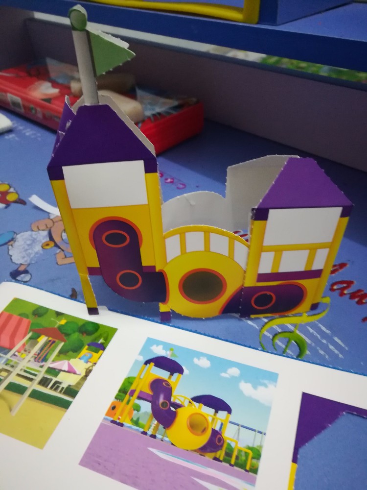 手工书我是晚上带回去的,等我第二天下班回家后,已经都被孩子一张一张的撕下来了,自己在那研究起来了,昨天中午回家,女儿说让我教她,到底小,还不怎么会玩,我帮我撕下来告诉她怎么弄,小丫头立马跑去奶奶那里显摆去了,哈哈。晚上儿子回来后,也是各种的玩,我点了一下就不管了,他自己去研究了一下,我吃晚饭,他也不吃,继续自己去研究,拼好后,各种的开心,我说拍照片,也是非常的配合的,感觉是比较的有成就感的,很喜欢的呢。