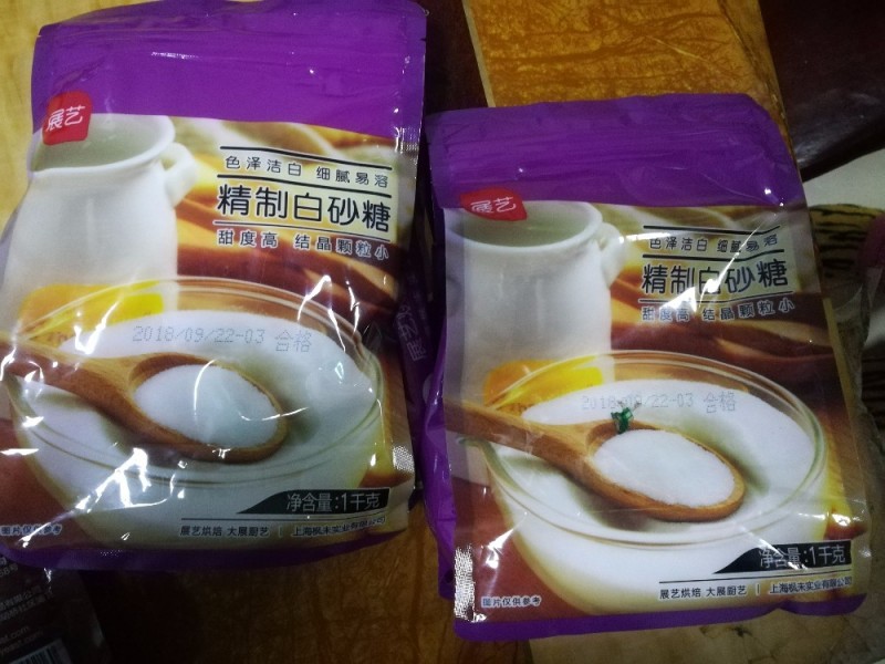 家里的细砂糖快没有了,赶紧下单,这都收到有好几天了,昨天不是刚好做蛋糕的嘛,把之前买的细砂糖剩下的一点点都用完了,还不够,后来还拿了刚买的细砂糖,我买的是展艺的,这个牌子的东西真是不错,这次买的这个白砂糖我买的是大袋装的,1千克的,我一次性买了两袋,想着保质期时间比较的长,放着也不会坏,跟别的东西一起买,算是凑单买了两袋,本来一开始就是只打算买一袋的,以前一开始买的是小袋装的,后来发现确实挺好用,就买了大袋装的了。