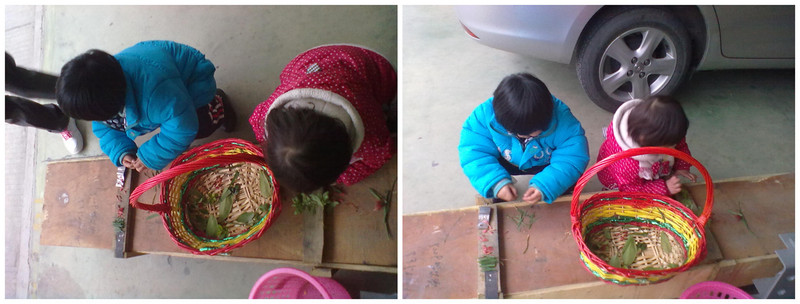 11号天晚上我回到家,看见她们在玩做饭的游戏,哈哈还真是有模有样的,小孩子玩这些真有意思,还专门用一个水果篮装了一些野草,说要用来做菜,还得把野菜弄成一截截的,然后就开始炒菜了,真是太好玩了,我们小时候不就是这样玩的嘛,小孩子没东西玩就是这样的。 上星期天上午,小妍坚持吵着要下去找姐姐玩,因为姐姐带她玩都没有好好玩,和她在一起那些坏习惯都学会了,什么好的方面都没有学会,我想只要让女儿开心就好了,我于是带梓妍下去玩了,临出门前得带点东西下去给姐姐吃,小妍对姐姐们倒是挺大方的,下去的时候姐姐在玩沙,还用勺子在炒来炒去,好象是在煮饭,她们两上在那里玩了很久,叫回去都不愿意回家。 小孩子在一起时间总是那么快过,姐姐中午要回家去了,小妍还挡着姐姐不让她回去了,哈哈!真是太搞笑了,姐姐走了她还猛哭,说姐姐吃完饭下午再来,可是她怎么都不答应,大脾气的样子都哭了起来,弄得我也烦起来,第次姐姐来我们家玩,姐姐走了她都要哭几场,哎,可能孩子就是寂寞,不希望玩伴走,以为姐姐走了再也不和她玩了。 俩人将准备好的野草和树叶,撕成小片小片的,小妍让姐姐教的,现在还不怎么会玩; 玩得挺开心的,继续努力的摘菜! 这次改换成玩沙了,我们小区正在搞装修有的房子的地板砖坏了,刚好有这么多泥沙; 两人一边玩一边在交流!