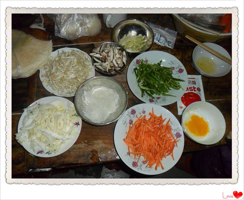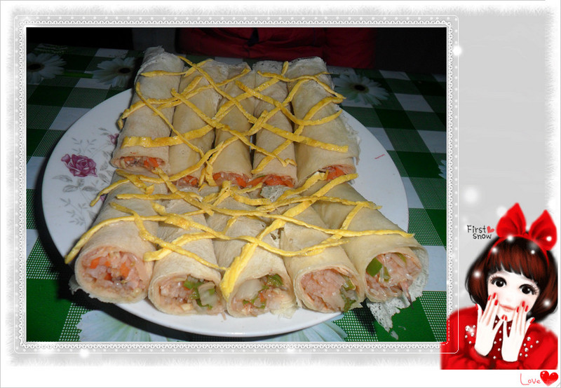 2月4日是农历节气中的“立春”。 立春,我只知道意味着春天的到来,但“立春,咬春”我还是第一次听说,呵呵,通过亲的这个活动贴,让我对中国的一些风俗有了进一步的了解。原来,这一天,中国民间习惯吃萝卜、姜、葱、面饼,称为“咬春”。但是各地的不同风俗又有不同的表现。原来是民俗专家表示,一个咬字,是心情,更是心底埋下的吃得了苦的一种韧劲儿,是中国人特有的一种风俗。 嘿嘿,为了写这个活动贴,我特意向婆婆请教做春卷的方法,这可是我第一次做哦,婆婆为了支持我的活动,不仅帮我买了需要的蔬菜,还充当起了我的好老师哦! 我做的这个蔬菜卷饼需要准备的材料有:绿豆芽,白菜,青椒,胡萝卜,香菇,粉丝,春卷皮(本想自己做的,来不及了)蛋黄液1个。根据自已家的情况来定克数。 调料:蕃茄酱,盐,糖,小磨香油各适量 ![]() 第一步:先将香菇、粉丝分别泡软。 第二步:将白菜、青椒、胡萝卜、香菇洗净切丝,粉丝切成长的小段。 ![]() 第三步:先烧开水,再把香菇放入开水中稍煮一两分种,再将白菜丝、青椒丝、胡萝卜丝、香菇丝、粉丝、绿豆芽放入沸水中焯熟。 第四步:捞起沥干水分后,加入蕃茄酱、盐、少许白糖、小磨香油搅拌均匀。 第五步:将搅拌好的菜放入春卷皮中,边缘涂上蛋黄液,然后卷好,再切成段,装入盘子里排放好。 到这基本上已经做好了,可是,看着还是显得单调些,婆婆给我出谋划策,用鸡蛋清煎成薄薄的饼,然后再用心慢慢的切成条,摆放在蔬菜卷上,哈哈,这样看起来是不是更漂亮些呢? 在做的这个过程中,宝宝是最想帮忙的一个了,一会儿跑到厨房,到我身边就想拿刀:“让我切菜吧。”婆婆费尽周折想办法不让宝宝捣乱我,最后,好不容易完成了。 当我把蔬菜春卷饼递给宝宝的时候,宝宝大口大口的吃,还说我最爱吃了,呵呵,样子很可爱!婆婆说味道有点淡,不过还行!我尝着呢,当然是自己做的觉得无比的香,哈哈。。。 宝宝也想卷,我就把剩余的蔬菜和春卷拿来让她尝试,嘴里还说:“卷,卷,卷春卷……”巧虎上的游戏的儿歌,宝宝可开心了! 自已动手,用心去做,感觉真的不一样,哈哈,世上无难事,只怕有心人! 本作品未经作者许可不得转载,转载请征求作者意见。擅自转载使用,将保留追究其法律责任的权利! 评分记录