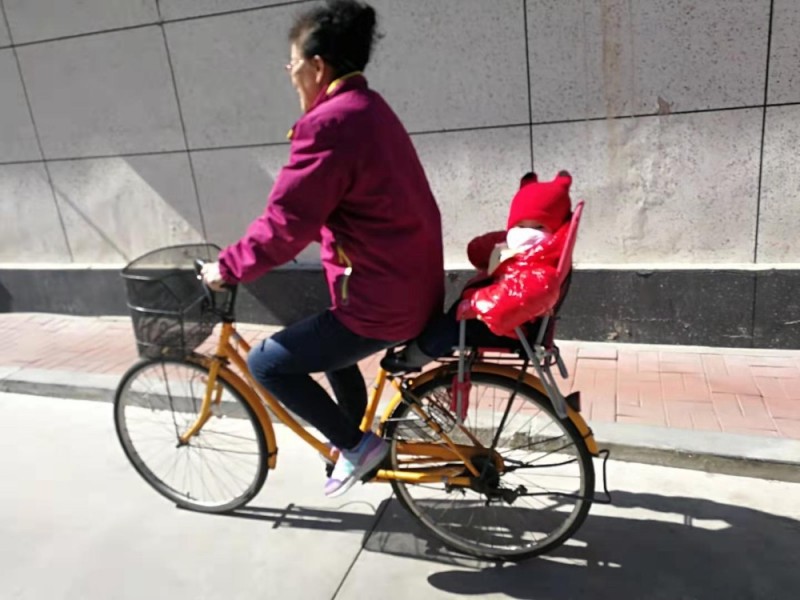 上周天气还不错,老妈照样要带二宝下楼去晒太阳,虽说是九个月但二宝的体重已经达到了22斤,是个十足的小胖子,如果抱的时间短还好,时间长了真是压胳膊吃力,而二宝的推车又放在老妈家新房子不好拿,所以灵机一动,老妈决定把二宝放在平时接大宝用的自行车后座上,这样就轻松了许久。也许她是第一次坐的原因,二宝并没有排斥,高兴的还把两条小腿搭在车座上晃动着,我在旁边陪着,老妈还骑上车走了两圈,二宝坐的直兴奋。 想想这个自行车后座真是安的太值了,那是大宝刚上幼儿园的时候,话说三四年前了,姥姥为了接送大宝而安上这个红色的后座,可能风吹日晒的原因,这个座位已经有些坏掉了,旁边有一点裂了,而这个座位在大宝上幼儿园期间没用上,反而上学的这大半年时间里充分利用上了,每天都是老爸早早过来在楼下等候,为的也是给我和宝爸忙碌的早上减轻一份负担。 一辈为了一辈,作为父母总想把自己最好的留给儿女,也是无私的默默奉献和付出着,现在我有俩宝,这样的体会就更深了,每天不是忙大宝就是照顾二宝,完全没有了自我,总是觉得时间过的飞快。不过还是希望二宝能够快快长大,减少频繁夜醒哭闹,大宝能够自立些,让我省点心。