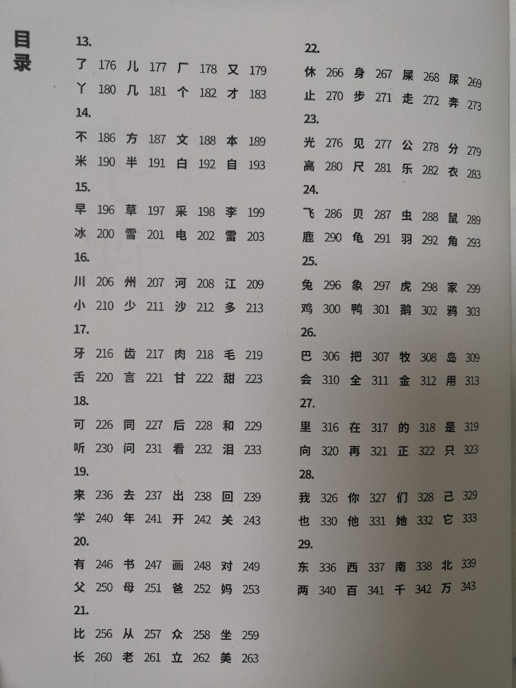 《字课》有两册,分别上册和下册,我也是特意翻开了一下,上册都是非常的简单的中文,下册里面是增加了笔画多的中文,这样就是很好的让孩子有个过渡的过程,孩子也是更加的容易去接受的,两本书目录对比,也是很明显的能够看出来这点的。