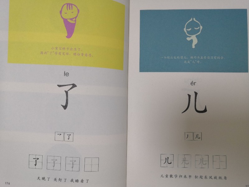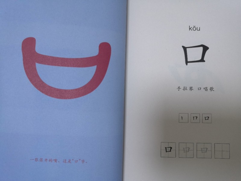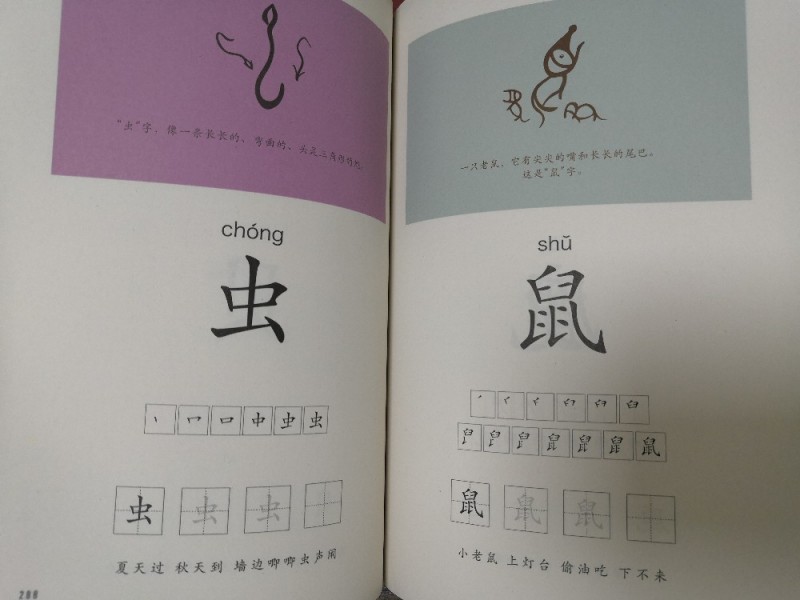 里面还有象形字,就是我们以前听过的“甲骨文”,可以让孩子明白文字的演变过程,一开始我们的文字,其实就是图画的形式出现的,这样可以引起孩子的兴趣,还可以就此问问孩子,他眼中的某个字是什么样子的,让孩子根据自己的想法画出来,这样一来,可以加深孩子的印象,更容易记住。而且这两本里面,也是有田字格的,孩子可以照着写,还有拼音、词语、句子,慢慢的去累积,让孩子在不知不觉中,就能够认识很多字,能够明白这个字的意思。