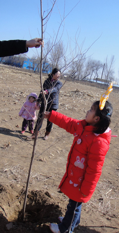 周日早上,我们一家三口早早地起床,老公早就做好出游的功课,装好热水,给宝宝带好了小吃,定好了路线直接出发了。结果九点就到了。别的活动照片再发别的贴子吧,这里只提植树。 这张照片是大部队领到小树苗后,大家开始各自行动了 我们也领到小树苗了,但是因为到晚了,没有领到铁锹,妈妈:宝宝把小树扶正了。宝宝扶得很认真。 因为没有领导铁锹,农民出身的爸爸妈妈用脚培土把小树给种上了 我踩我踩,踩实些。我快跑,爸爸来浇水了,不要洒到我身上哟! 第二批铁锹来了,爸爸用领来的铁锹认真地给小树培起了土。 宝宝也忍不住好奇的心,“爸爸,你休息一下,我来挖一会”,自己拿过铁锹找块空地挖了起来,没有宝藏,有的只是挖土的乐趣。 全体植树完毕,小朋友们排好队,来领宝宝地带的礼物喽,最美味的蛋糕,看领到的小朋友都已经认真地看起来了。 植树活动在我的图片的引导下这么快结束了,嘿嘿。虽然天气不算太好,风很大,但是小朋友们和孩爸孩妈们玩得很开心。 本作品未经作者许可不得转载,转载请征求作者意见。擅自转载使用,将保留追究其法律责任的权利! 评分记录