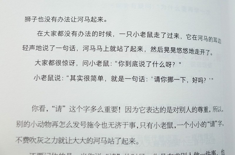 有了这个具象的表达,孩子就会很容易理解,为什么在别人向你询问的时候不能沉默不语?沉默不语会造成什么样的后果?里边还加入了一些孩子喜欢听的小故事。有了这些小故事穿插在其中,孩子就更能接受这样的观点。