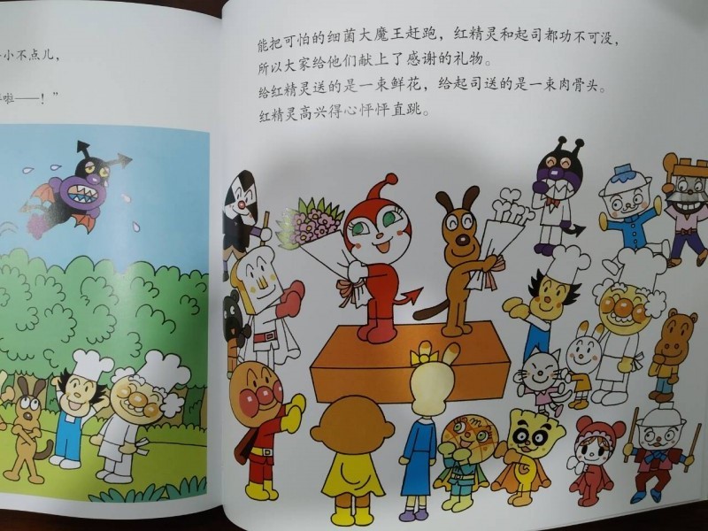 朋友是小朋友生活中很重要的一部分,每一个成长中的孩子都可能为身边的朋友而开心或者苦恼。每个人都渴望有真心的朋友。孩子们和同学们一起学习,一起运动,一起游戏……难免会有一些小矛盾,小摩擦。这时候就需要孩子有是非观念,更要有一颗宽容的心,这样孩子和朋友们才能合睦相处,共同进步,一起成长。在绘本故事中,红精灵要细菌人和面包超人一起对付细菌大魔王,细菌人不愿意,红精灵说:只靠我们俩的力量,肯定要被干掉了。细菌大魔王才是不可原谅的对手呀。最后细菌人还是和面包超人一起去携手对付细菌大魔王。