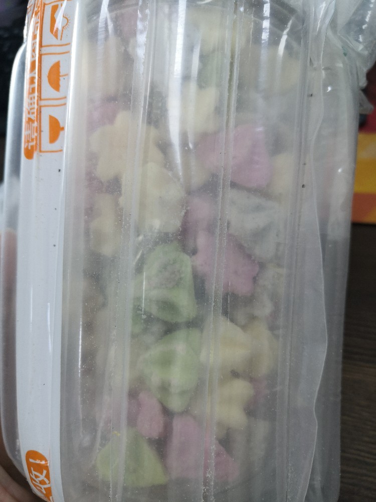 (快递粗鲁,有瓶溶豆豆被压坏了)
