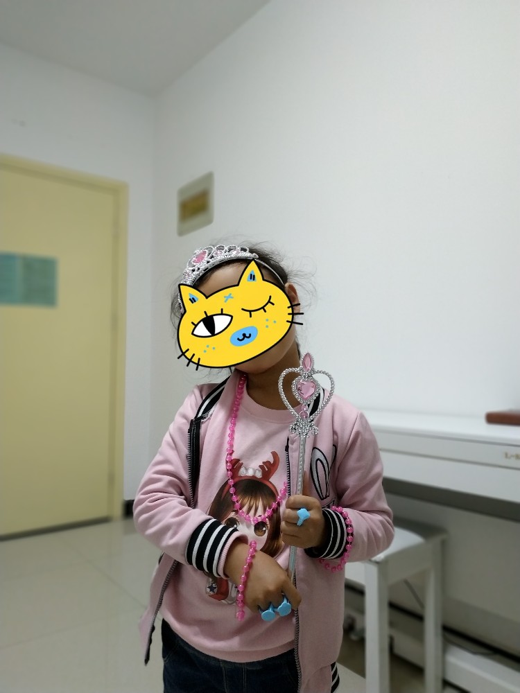 玩具收到好几天了,小姑娘每天回来,就跑去把化妆盒挎背在身上,拿出所有的装饰品把自己装扮起来,三个戒指,手链项链齐上阵,头带王冠,手拿魔法棒,俨然是魔法大土豪的派头啊~