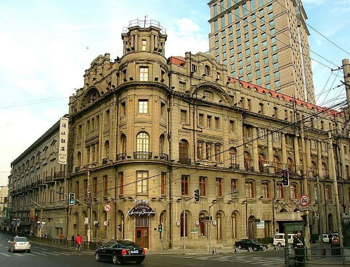 穿过陈毅广场、上海人民英雄纪念塔、外白渡桥,再往右手边马路对面,有一座5层的石砌混凝土砖木混合结构的饭店,这个就是浦江饭店,之前也被叫做“礼查饭店”。这个饭店可不简单,1846年由英国人Richard创办,之后于1860年易主由英国商人史密斯接手,易主后饭店的硬件设施有很大提升,很多当时西方技术在中国的第一次呈现,都是在这个饭店,比如电话、电灯、电影、自来水等。