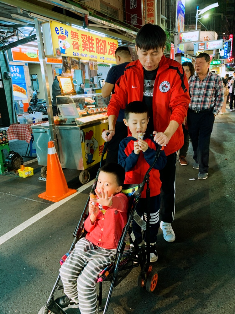 这一下子,小斑马和爸爸同事家的哥哥立刻雀跃了 我跟爸爸的同事分别去不同的摊位买买买 爸爸就负责在一个人少的位置陪着孩子们吃吃吃 哈哈哈,分工相当明确!