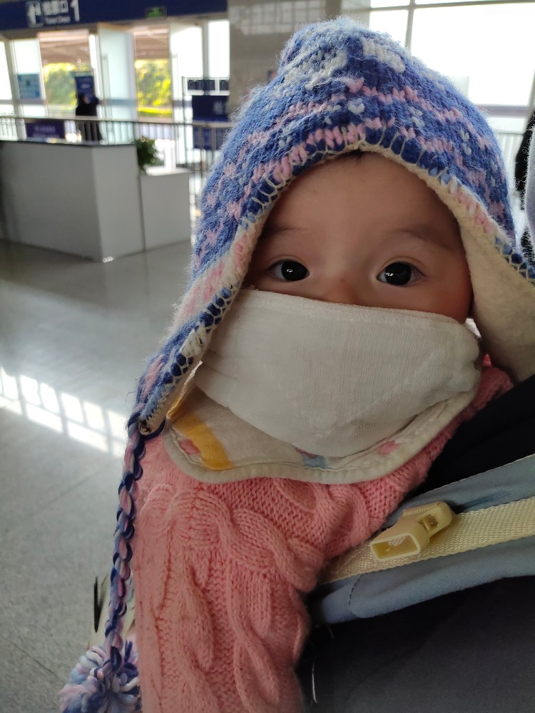 给棉花糖戴口罩有点不容易,对棉花糖来说这口罩太大了,加上棉花糖的脸动来动去的,所以只能凑合的戴上。可能是棉花糖慢慢的适应了口罩,所以她没有那么拒绝口罩了。刚开始还担心棉花糖会用舌头舔口罩,后来看了几次棉花糖都没有吃。棉花糖那时还挺乖的,戴着口罩也没有哭闹,看来棉花糖不拒绝当一回蒙面侠。 棉花糖的不乖和口罩无关,坐高铁和坐动车的时候,棉花糖都在哭闹。特别是在高铁上,我不光不能坐着,还要在车上给棉花糖唱歌来安抚她。有时唱歌也不行的情况下,我还要背着她走来走去。现在还是很怕带棉花糖出门的,所以不是万不得已,还是和棉花糖乖乖在家好了。因为病毒的影响,回家的路上明显少了很多人。 ![]() ![]()