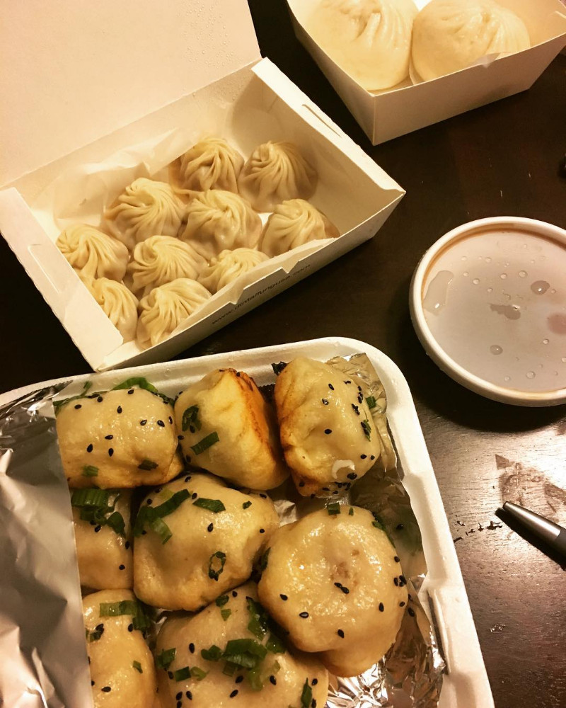 无奈我太懒了,一个人在家做太麻烦,所以也就“云吃美食”。但是懒归懒,至少出去吃美食的行动力我还是有的。 今天带着樱桃和毛豆,驱车一个多小时,特意去了我们这儿最有名的中餐馆,来点家乡的味道,安抚安抚我那躁动不安的胃。点了牛肉面、京东肉饼,还打包了生煎、小笼做晚餐。味道嘛,和其他的中餐馆比是好吃的,可却远远没有国内我家楼下的小笼馒头店好吃。
