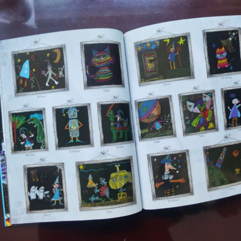 收到的是这本——《 Winnie and Wilbur The Magic Wand》魔法棒的故事。 ![]() 封面太有趣了,看了就想哈哈笑。看到温妮手里的那个东西了吗?那个已经扭得像麻花一样的棍棍,还溅着水花。一旁站在洗衣机上的小黑猫威尔伯,举着爪子露出牙齿在微笑。视线再往下,是一个开着门的洗衣机,里面洗过的衣服和毛绒玩具还露出来。结合标题,让我们来大胆猜测一下发生了什么事?八成是温妮女巫的魔法棒被洗衣机给搅和了吧?不知道魔法棒被洗衣机洗过之后,是否还有魔法呢?如果没有魔法了,温妮又会遇到什么困境呢? 待着满满的期待,翻开这本书。 ![]() 首页标题页里画的温妮,还是很开心的,骑着扫把,手里举着魔法棒,肩膀上趴着小黑猫威尔伯,温妮一定是在奔向新的目的地吧? 旁边的文字写到,每个画面里都有值得关注的画面,还能挑战一下温妮和威尔伯给你的难题,你能找到多少个时钟呢? 故事开始了,故事中的温妮今天有一个重要的表演任务,需要给大家表演魔法。起床后的温妮在挑选衣服的时候,发现她的漂亮裙子弄脏了,于是丢去洗衣机洗。顺便还丢进了她的毛巾、睡衣、带子等等。洗衣机工作时发出的嗖嗖嗖 声音,好形象,看起来洗衣机转动得非常快呢!最后洗衣机还会发出clunk的声音,看来和洗衣机的器械也是有一点老化啦! ![]() 晒衣服的时候,温妮才发现一个严重的问题,她居然把魔法棒丢进去洗了!温妮赶紧尝试这个已经拧成麻花的魔法棒,想看看是否还可以正常工作。她先是尝试给一个苹果改换颜色,结果变出了一颗巨大的苹果树。接着这个巨大的苹果树又变成了一盆巨大的苹果派。一切都出乎意料,不在控制。怎么办呢? 此时小黑猫威尔伯看在眼里,有了主意。他跑去镇上的店铺里,寻找有卖魔法棒的店铺。终于在一个拐角发现了一家卖魔法棒的店铺,店铺的海报上画满了魔法棒。等到威尔伯叼着一根魔法棒回到家中时,温妮已经来不及换衣服啦,高兴得赶紧骑上扫把待着威尔伯赶到表演场地。 表演开始了,温妮需要把威尔伯从黑色变成绿色,又是变颜色!念完咒语之后,静静地,啥都没有发生。突然,魔法棒爆开了一大堆纸做的花朵,非常美丽。所有的观众大笑起来,他们非常开心温妮能设计一个这样的魔法表演,纷纷询问这个魔法棒要怎样才能买到。哈哈~~~ 很有趣的一个故事,随时全英文,不过学习了两年英文的小朋友,可以勉强磕磕绊绊地读下来,还行! 书的开头和结尾,都有这样两个大全页,里面展示了非常多幅小朋友的画: ![]() 画风非常童趣,跟整本温妮女巫的画风有着某种程度上的一种契合。 值得全套入哦! 本作品未经作者许可不得转载,转载请征求作者意见。擅自转载使用,将保留追究其法律责任的权利! 个性签名