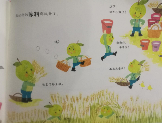 我们家的小朋友挺喜欢吃水果的,尤其是苹果,所以对这套关于两只苹果的故事很是喜欢。总是缠着要读,虽然拿到手还不到一星期,不过这套书已经读了十多遍了。 这套书总共有三本,即《红小妹和绿小弟开运动会》《红小妹和绿小弟开餐厅》和《红小妹和绿小弟去郊游》,每本书一个独立的故事,书中的故事场景如运动比赛、做饭、郊游也是小朋友在幼儿园经常参与到的,就算没有上幼儿园的小朋友在家中也不算陌生,因而这三本书里的场景基本上属于孩子们所熟知的内容,小朋友阅读的时候会比较有代入感。