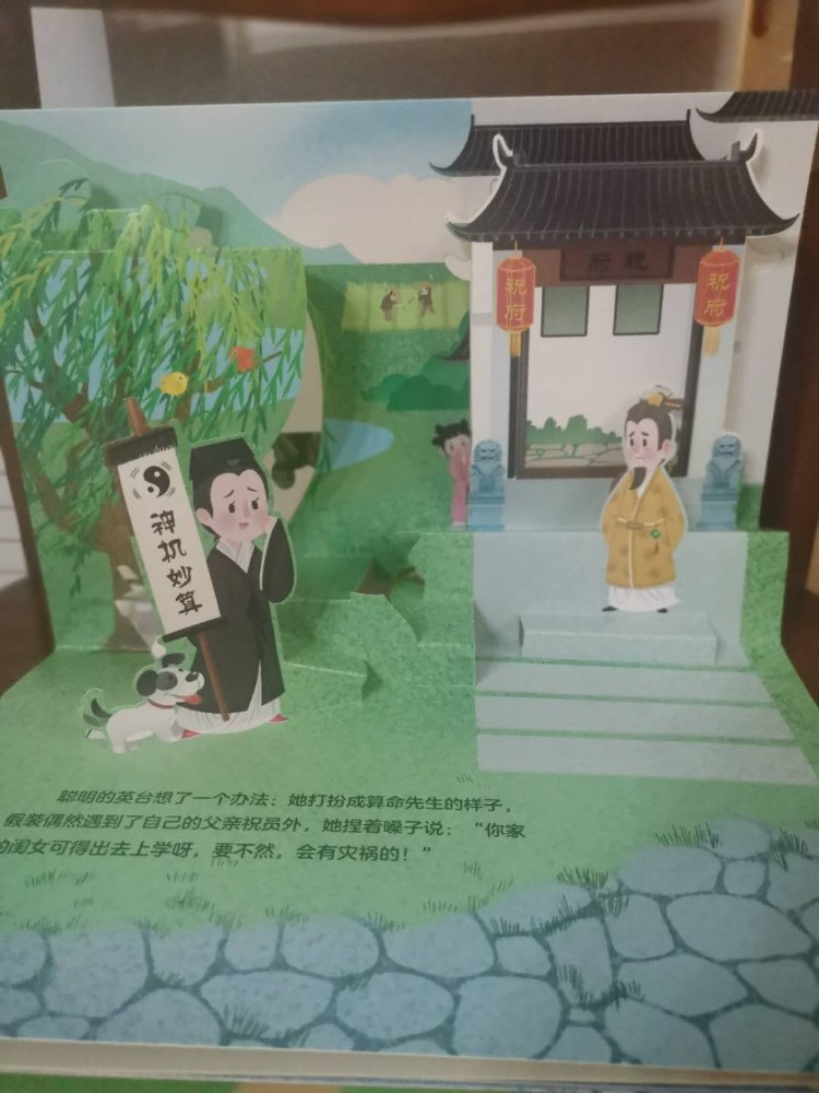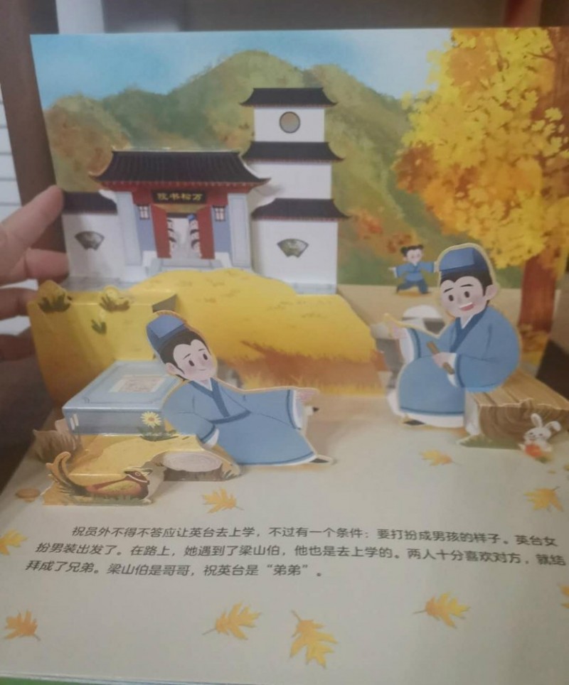 ![]() 记得很小时候的时候,那时候家里没有电视也没有手机,一到空闲的时候或者晚上睡觉之前大人就会给孩子们讲讲故事,说说传说。牛郎和织女啊,那里的老牛会说话,王母娘娘用簪子画出来一道银河;相邻的两家人有一个共同的女儿,她就叫孟姜女,她好可怜,也好厉害,哭倒了长城呢;梁山伯和祝英台十八里相送,依依不舍,小伙伴们都为梁山伯的愚钝着急不已,两人化蝶时有赚足了大家的眼泪。这些故事好迷人,好有趣,孩子们都盼着天黑,盼着老人们给自己讲故事。现在的孩子玩具多了,电子设备多了,娱乐项目也多了,但是知道这些故事的人却越来越少了。那天看到地带的分享预告,有这么一套书,说的就是“中国四大民间传说”, 马上唤起了我童年的记忆。 《梁山伯与祝英台》、《白蛇传》、《孟姜女哭长城》、《牛郎织女》它们流传了好几千年,一代又一代的中华儿女听着这样的故事长大,又把它们讲给自己的孩子听,毫不夸张地说:这些传说故事已经融入了我们的血液。我一定要参加分享会,学习一下,然后讲给我的孩子听,让我的孩子们也了解一下这些中国的民间的古老的传说。 果然大家的想法都和我一样,分享会那天很多爸爸妈妈都来参加了,大家积极发言,都对这套书非常感兴趣,虽然名额不多,只有几个人得到图书试用,相信大家都有计划购买一套了。最后在试用试读频道得到这次试读机会,非常感谢宝宝地带,也感谢童年童悦对此次活动的大力支持与赞助。 很快就收到了图书,我收到的这本是《梁山伯与祝英台》。孩子们拿到图书以后也非常感兴趣,迫不及待的打开来看,一遍一遍地让我给她们讲里面的故事。我们还是第一次接触立体书呢,编辑也非常用心,用最少的语言将整个故事完整的展现给大家。整本书12页,每两页展开是一个小小的场景,一共六个经典场景。打开书本,90度的角度正好欣赏,无论是祝英台家的江南小楼,还是梁祝初遇;无论是十八里凉亭相送,还是墓地化蝶都制作的非常精美,每一个都是单独的一个小小舞台剧。 孩子们看完以后,又搜出来梁祝的动画片看了一遍,还说以后再看看《白蛇传》、《孟姜女哭长城》、《牛郎织女》。看来现在的孩子并不是对民间故事不感兴趣,只是大家在传播和传承的时候没有抓到他们的兴趣点。这套《民间传说立体书》不但故事讲得精彩,而且特别有创意,采用立体的形式,让古老的故事走出纸面,靠近读者;让画面映入眼帘,让故事留在心间。 ![]() 横版图书 ![]() 江南风格的祝家小楼 ![]() 梁山伯和祝英台认识结拜 ![]() 小朋友认真的翻看 小朋友一边玩一边说跳跳跳,真的很生动,玩的不亦乐乎。