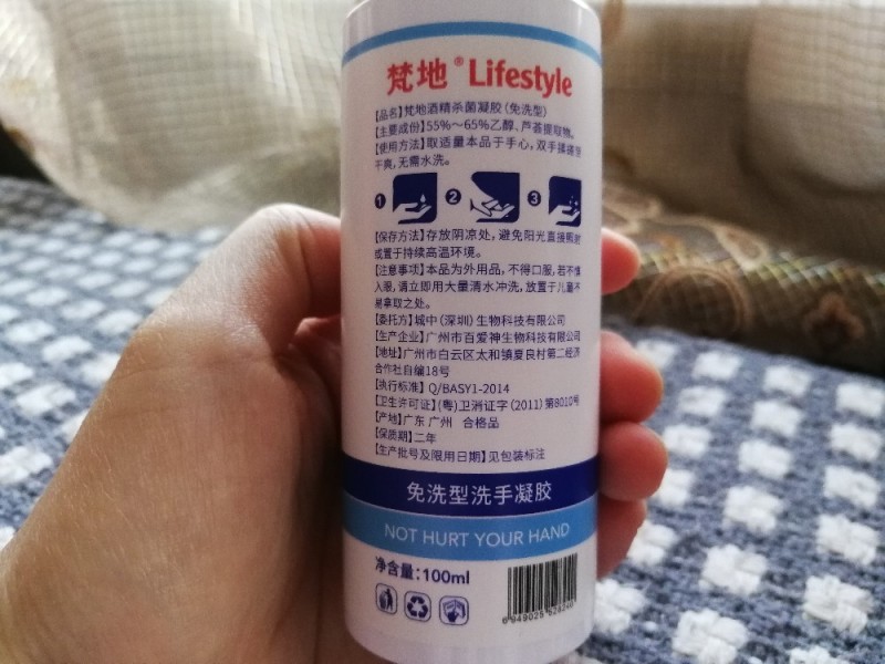 梵地酒精杀菌凝胶,免洗型,不需要水,直接就能用。只要从瓶子中挤出一些在手心里,揉搓几下,10秒就变干,就能达到消毒的效果。而且清清爽爽,无异味,非常适合我们复工的上班族。还有需要出门买菜的老年人呢。