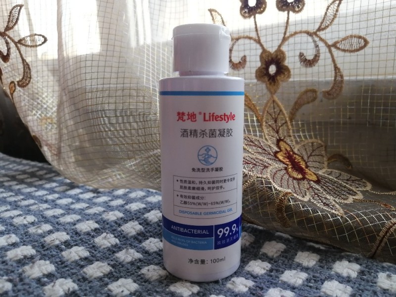 梵地酒精杀菌凝胶主要成分55%-65%乙醇、芦荟提取物,能够99.9%高效消灭细菌,同时添加了芦荟润手配方,呵护双手皮肤。 梵地酒精杀菌凝胶,100ml,小小的瓶子,瓶身设计很小巧,非常便携,放在衣兜、包包里,也不占位置,随时随地预防细菌病毒。保质期到2022年,日期很好。