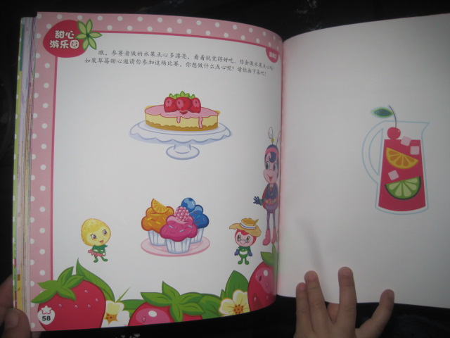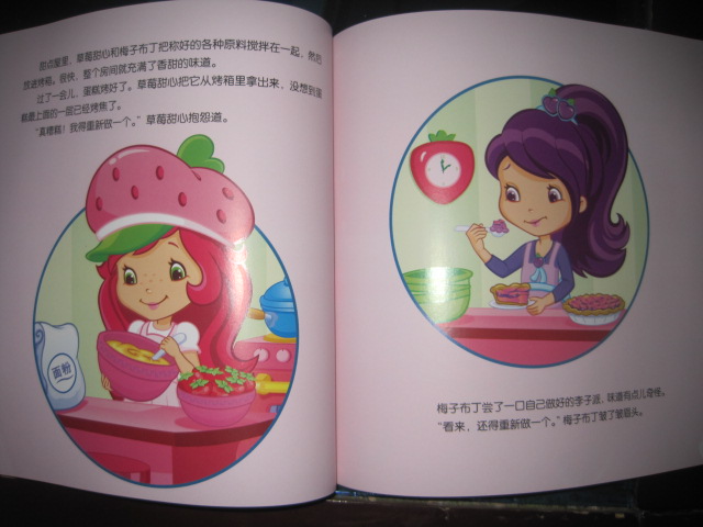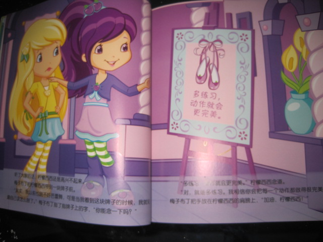 周一上班,我办公桌上有封快件,没有快递单,我问周末值班的同事:“这是我的快件吗?”回答说是。我疑惑:怎么会有我的快递?最近没买什么东东呀?打开里面还有一层快递包装,上面的快递单写着从北京发出的。忽然想起来:啊——是不是草莓甜心?!这几天太忙了,那天偶尔看见大家在群里议论说通过试读里有我。一忙给忙忘了,反而有一种很意外的感觉。哈哈,太兴奋了! 晚上回家,瑜儿问我:“你给我买新书没?”嘿嘿,这孩子,怎么跟知道似的。 立即拿出来给孩子读,这本书真是书如其名啊——草莓甜心,从封面到内容,从颜色到绘图,都给人一种甜甜的、美美的感觉。文字读起来更是甜美优雅。 这本书里讲了两个故事:优雅的芭蕾舞和水果点心比赛 故事讲的是六个莓果女孩之间相亲相爱,互相帮助,共同成长的趣事。每个故事都有一个主题意思。 开始讲优雅的芭蕾舞了,刚念了第一页:草莓甜心和她的朋友们去上芭蕾舞课。“快点儿!”香橙朵朵催促道。“放心吧,时间还早,不会迟到的。”草莓甜心安慰她道。瑜儿就问道:“哪个是草莓甜心?”我指给她看,一个头戴草莓帽子,身穿草莓裙子的漂亮女孩,瑜儿一下子就爱上了:“哇,真漂亮啊!”然后就跟着几个女孩一起进入了优雅美妙的世界里,妈妈也尽量把语速放慢,声音也尽量显得柔和优雅,我们继续着:“……音乐节奏逐渐变快,女孩子们连忙伸展双臂,轻抬腿,向前跨步,像一只只美丽的天鹅在教室里飞来飞去。一、二、三、四,向前!向前!向前!她们跳得欢快极了!……”“妈妈,柠檬西西为什么不高兴了?”瑜儿发现了画面上,柠檬西西的表情变化,只有她一个人是噘着小嘴儿。“哦,可能是她跟不上大家的步子吧?好像她跳错了,你看她的动作……”“她的腿跳的和别人的不一样!”孩子观察的还真仔细。其实妈妈也不知道剧情怎么发展的,带着疑问我们接着往下读“……轮到柠檬西西了,她看起来有点儿紧张。‘放松一些,’梅子布丁说,‘向前看。就这样,开始跳吧!’可是,柠檬西西看起来更紧张了,她皱着眉头,试着迈开双脚跳了一下,她真希望自己能跳得高些!……每个人都跳得很好,大家感到很快乐。但是,只有柠檬西西高兴不起来。‘柠檬西西,你怎么了?’梅子布丁问。‘我跳得不好,’柠檬西西低下了头,‘我想,也许我不太适合跳芭蕾舞。’‘不会的,’梅子布丁微笑着说,‘你只是练习得太少了。如果多练几次,我相信你一定会跳得更好。……”然后大家都过来安慰和鼓励柠檬西西,给她打气为她加油,柠檬西西没有放弃,一遍一遍努力地练习着。终于做出了完美的动作,大家都为她鼓起掌来,柠檬西西不再怀疑自己,“从那天起,柠檬西西开始觉得跳芭蕾舞是一件快乐的事情啦!” 故事结束,书中还有甜心智慧屋和甜心游乐园两个小活动,草莓甜心密语告诉我们人不能失去信心,否则什么事情都做不好了!还有结合故事内容让小朋友动手和动脑的练习题。 水果点心比赛是讲莓果城里要举行仪式水果点心大赛了,草莓甜心和梅子布丁、柠檬西西都报名参加了比赛。草莓甜心和梅子布丁认真做着自己的蛋糕和李子派点心,直到做出满意的美味点心才离开甜点屋,柠檬西西因为有别的事情要处理,所以很晚才来到甜点屋,因为时间不多,急急忙忙的工作厨房弄得一团糟。不过柠檬西西对自己做的柠檬饼还是很有信心。第二天,当长脸先生宣布冠军是梅子布丁时,柠檬西西很不服气的问长脸先生,为什么不喜欢她做的柠檬饼,当得知柠檬饼太咸了时,她惊讶极了,并怀疑是梅子布丁为了要赢得比赛,在她做的水果点心上面做了手脚。于是好朋友反目,梅子布丁委屈得跑回家了。在草莓甜心的提醒下,几个女孩陪着柠檬西西一起到厨房来弄清楚到底怎么回事,原来是柠檬西西手忙脚乱的做点心时,误把食盐当成了糖。她重新做了柠檬饼送给梅子布丁,并请好朋友原谅她。误会解除,几个女孩一起分享着美味的点心,感觉幸福极了!这个故事最后的甜心智慧屋里,柠檬西西密语这样告诉我们:在事情没有调查清楚前,不要随意指责别人,这样对朋友是一种伤害。 多么聪明可爱的一群女孩子啊,从她们的故事中,我们知道了做一个幸福女孩的成长秘诀:充满自信,不乱猜疑,读出了善良女孩的优雅味道! 本作品未经作者许可不得转载,转载请征求作者意见。擅自转载使用,将保留追究其法律责任的权利! 评分记录
