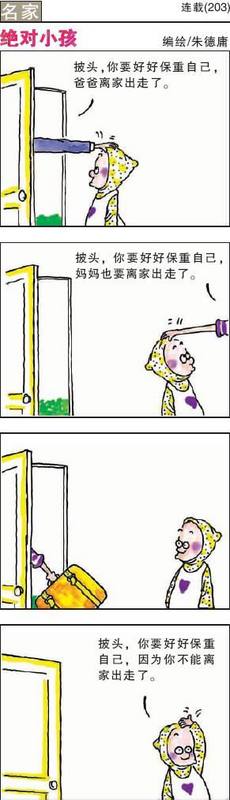 果然,很好看。总结如下: 首先,剧本设计了极富戏剧性的情节和个性鲜明的人物。 第二,诙谐幽默的语言,让人喷笑。超级逗,孩子和大人都笑得合不上嘴; 第三,非常炫的灯光效果和华丽丽的歌舞表演 贵族妞家里餐桌上的“贵族蚊子”,家长们许诺贵族妞数到第100只羊时候,白马王子会来到她的身边;等终于数到了,白马王子却没有来,家长们对她疑问的回答是:“等她不再胡思乱想的时候。。。。” 比赛是一个成绩优秀的小孩儿,英语考试成绩得了99分,大人还不满意,对他丢分的“hope”和“help”一词要求抄写100遍。等他终于考到了100分的时候,想象自己站在第一名的领奖台上,想着爸爸妈妈会给发什么样的奖品的时候,没想到爸爸妈妈拿过来的是沉重的一门又一门的功课,有语文、数学、美术、体育。。。。,,家长的回答是:需要的是全面发展。 宝儿身上承载着家长自己没有实现的儿时梦想,爸爸想让她成为钢琴家,妈妈想让她成为舞蹈家,宝儿就在家长的两个声音中不知所措,没有一点儿喘气的时间。 披头成绩不好,试卷只得了66分,家长自然是非常不满意,等终于考了99分的时候,大人们又怀疑他作弊。。。。。 五毛最好玩了,在父母面前表现的是一个乖孩子,但是背地里去爱玩的很。在浴缸里洗澡的时候想象力超丰富,想象成和一个大海怪在做斗争。 爸爸妈妈的形象就是大多数家长的形象了,永远对自己的孩子不满意。。。还吵架,还。。。离家出走! 最给力的还是第51只羊,从小孩子的梦里跑了出来,让小孩子到了一个没有大人的世界。。。 从网上搜了一些漫画放到这里,供大家围观。 总之,感谢宝宝地带网提供的良好的机会,让我们一饱眼福,一饱耳福。 最后发几张等待进场时候的小朋友们嬉戏的照片,还有就是看完后小吃街就开张了,这两个小馋孩子就开始吃吃喝喝了,烤羊肉串,还有佩服苹果小同学还能吃烤臭豆腐串呢。 总之度过了一段愉快的时光。 本作品未经作者许可不得转载,转载请征求作者意见。擅自转载使用,将保留追究其法律责任的权利! |