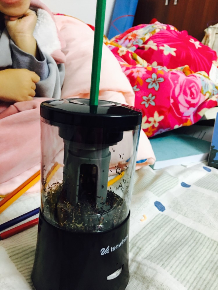 ![]() 收到天文全自动削笔机,激动的心情溢于言表!第一时间就和女儿试用了。看到这么大个“家伙”,本来以为会很难操作。幸好有说明书在手,要不可能我还傻傻的去找开关在哪?这不是完全无视人家“全自动”吗?这名副其实的全自动,只要把铅笔轻轻的插进去,不到五秒钟的时间,就削好自动退出来了。速度快得让人难以置信,便利得让人忍不住放声大笑。拥有此物,我再也不用担心女儿要叫我削铅笔了! ![]() 女儿一开始并不知道这是削笔记,自顾自的玩,等到她看到放笔进去,一下子出来就是尖尖的了,顿时眼睛都瞪大了,紧接着说妈妈,我也要铅笔,给我找一支铅笔。老母亲立刻把她的蜡笔全都找出来,小家伙跃跃欲试的样子简直是太好玩了。原本我还挺担心这玩意会不会孩子操作不了,会不会操作不当?谁知道人家三两下就把一排铅笔都削好了,丝毫没咱啥事有木有? ![]() 更搞笑的是,这家伙还觉得不过瘾,为了再体验一把削笔的乐趣,这会正在卖力的画画呢。因为老母亲说了不能浪费,只有画完了才可以再削,然后人家画了一会就跑过来说:“妈妈,你看不尖了!”这点小心思呀,全是因为我们的天文全自动削笔机太好用了。这比老母亲的各种催都管用,说是学习神助攻“神器”那可是当之无愧。 ![]() 印象里我小时候就买过一个卷笔刀,还是那种最简易的,根本不好用,只能用小刀,经常把手弄得黑漆漆的,最主要还不安全。现在的孩子可比我们幸福多了,但现在的孩子也比我们负担大多了。每天写不完的作业,须得家长陪着旁边帮忙削铅笔才可以。有了这个削笔机器人—天文全自动削笔机,我们的双手就可以解放出来了。 ![]() 接下来说说这款天文全自动削笔机的优点吧。自动进退削笔,无需手握,孩子自己就能操作,5秒搞定。若是自己削,5秒怕是连笔都还没插进去吧。这简直是太省时省力了!外观整洁高大上,底座自带有四个小吸盘,让削笔机器人稳稳的站在!还有防误触保护,使用过程安全,材质环保无害,废屑倾倒清洁很方便,再也不用担心手黑漆漆的了。我们还可以根据需求调整笔尖的粗细,方便孩子写字和画画,这比人工做的都精准! ![]() 整个削笔过程非常的流畅,不用担心对卡铅。因为天文全自动削笔机采用了独家不卡铅科技:断芯自动脱落,避免削笔记卡顿,最短可削6cm铅笔。更为值得一提的是可更换合金钢刀架风力耐用,可使用3000次左右,绝对的高品质有木有?而且有通用的安卓接口,内含充电线,充电两个小时就能削笔300次+,孩子带着上学也完全没有问题。因为好操作,声音也很小,不会影响到其他人。一放一取,五秒钟的事,估计别人都没反应过来呢,哈哈! ![]() 在我拍摄女儿操作天文全自动削笔机的小视频发到我们的家族群里,立马就炸锅了,都追着问这是什么呀?太神奇!尤其是侄女,缠着我把削笔机器人送给她。女儿也很喜欢,两个好朋友居然为了天文全自动削笔机在视频里抬杠了,哈哈!不要怀疑,这款天文全自动削笔机真的就是这么有魅力!爱学习的宝宝值得拥有哦!