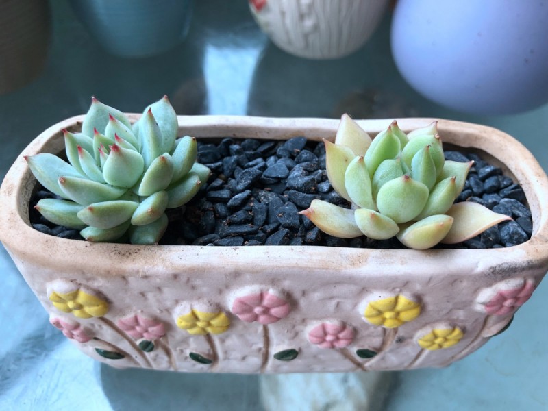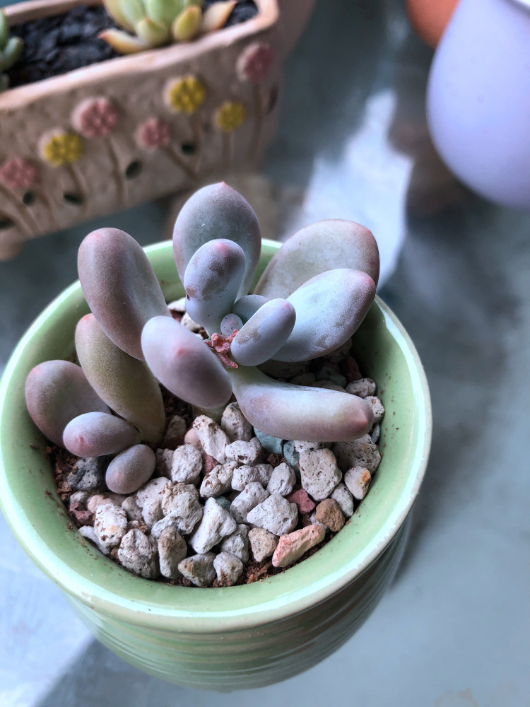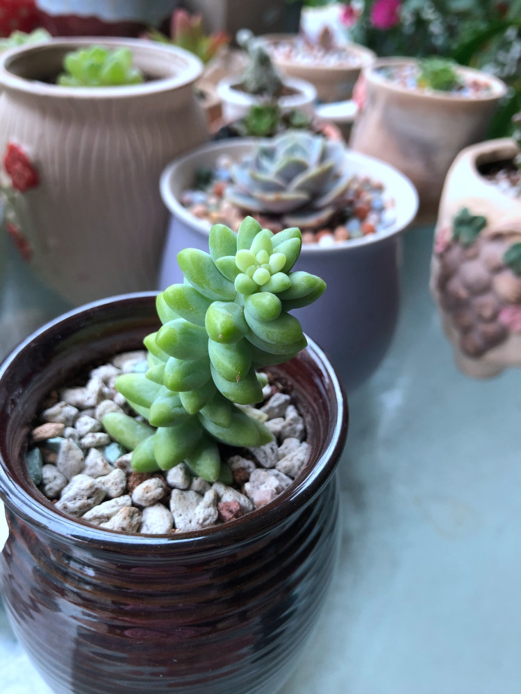 这次买的是十元六颗不同品种的法师,当时也有一些多头法师,还有一些小老桩法师,但是觉得太大就没有那么可爱了,所以买了这种多品种的,可以试一下哪种比较好养。 收到的时候有点吃惊,原来小颗的法师就那么大,单拍可能看不出来,和旁边的多肉一比就觉得个头大了好几倍。 ![]() 这是绿羊绒上盆后的效果。叶片又长又大,应该是我的多肉中最大型的一颗。这颗绿羊绒中间部分长出很多小的像玫瑰花一样的小头,不知道后面会不会都长大。 ![]() 这颗叫万圣节法师。 ![]() 这些多肉起名都是五花八门,也不明白这颗法师和万圣节有什么关系,从外形看和铜壶法师都很像。 ![]() 万圣节法师旁边的那个小花朵是绿羊绒的植株杆上掉下来的,我先插在花盆中,不知道能不能活 ![]() 现在万圣节法师的叶片是越来越紫了~ ![]() 这是法师中出名的黑法师。可能是因为比较好养所以也比较亲民吧,很多人样法师都会选黑法师~黑法师有两种,圆叶的叶型较圆,叶面平整,叶宽较短,颜色要浅一点。我的这种是尖叶的,叶片较尖,叶缘两侧翘起,微微发紫,颜色较深。 ![]() 长了半个月花心都变紫了~ ![]() 铜壶法师也有人叫玫瑰法师,叶片的形状和玫瑰有点像~ ![]() 从上面看的确很像盛开的玫瑰花~ ![]() 这是紫羊绒,是里面状态比较差的一颗。 ![]() 这颗紫羊绒的叶片都有些蔫,形状也不是太好看。 ![]() 这颗叫欧紫法师。其实这几颗紫黑的我都觉得特别像,向商家问了名称才知道~ ![]() 这颗法师真是超级大,也不知道商家怎么养得这么好,和旁边的两个小多肉一对比真是要大十几倍了 ![]() 后来欧紫法师的花杆上突然发黑,外围一圈的叶片都掉了~ ![]() 当时顺便给几个多肉换了盆,把蓝鸟放到大盆里养~ ![]() 半个月就已经长得挺大的了。 ![]() 这是一个月前刚刚买的新玉坠 ![]() 现在已经长出许多新芽 ![]() 这是TP和艾丽卡 ![]() 现在红颜色有点褪色,叶片也变大了 ![]() 桃美人似乎长得比较慢 ![]() ![]() 山地玫瑰开始的颜色很鲜艳 ![]() 可能是因为服盆原因,好多叶片都黄了 ![]() 这个红爪是变化最快的~刚刚买回来的红爪的叶片中间有两个花苞,我也不知道是多头还是花~ ![]() 有次下雨还专门给淋雨了~ ![]() 现在竟然开出很漂亮的几多花,本来应该是要剪掉花杆的,有点不舍得 ![]() ![]() 红宝石收到的时候小小的,不过很红 ![]() 现在已经长得比较大了,但是叶片都变成绿色了 ![]() ![]() ![]() ![]() ![]() 熊童子买回来的时候还掉了一片大叶子好心疼 ![]() 现在中间的小叶片也开始长大 ![]() 一个月前刚刚换盆的蓝鸟 ![]() 现在的蓝鸟 ![]() 这颗也是去年买的,有点像巧克力方砖~ ![]() 这个应该是徒长的原因,不过换盆后这一个叶子变大了许多 ![]() ![]() 这颗我养得最久的一颗多肉,有点像桃蛋,但是当时没有问商家名称。 ![]() 一个月变化也是有些大了,叶片都长出来很多新的了~春天是多肉生长的季节,马上就要到夏季了,估计这些多肉都要停止生长了,赶紧趁着春天的尾巴让他们多晒点太阳长得快一点~ ![]() 多肉养殖记(一)——2017年第一次接触多肉 多肉养殖记(二)——2018多肉搬家 http://bbs.babyzone.cn/showtopic-735944.html 多肉养殖记(三)——2019重买多肉 http://bbs.babyzone.cn/showtopic-736792.html 多肉养殖记(四)——难熬的夏季 http://bbs.babyzone.cn/showtopic-736880.html 多肉养殖记(五)——2020春天的萌芽http://bbs.babyzone.cn/showtopic-737546.html 多肉实物和卖家图片对比 http://bbs.babyzone.cn/showtopic-701877.html 本作品未经作者许可不得转载,转载请征求作者意见。擅自转载使用,将保留追究其法律责任的权利! |