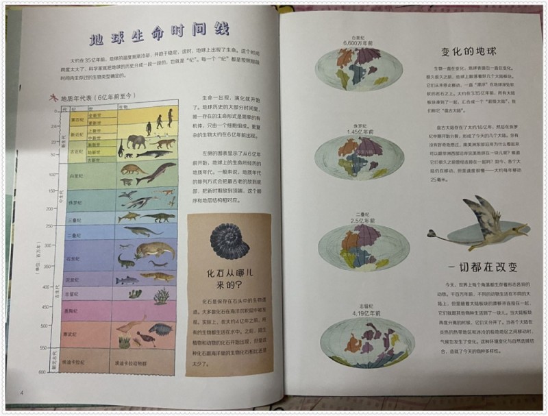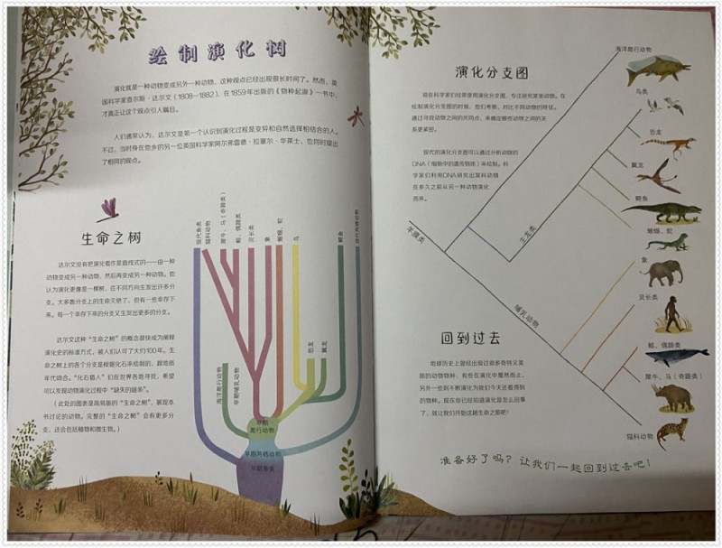 正如书中所说“生命一出现,演化就开始了”,每一个历史时段按生存过的生物类型确定了不同的“纪”,在地质年代表上,我们可以清楚地看到从6亿年前至今,地球生命所经历的不同地质年代。生命之树更加直观地看到演化的链条,不同的分支表示不同的物种。