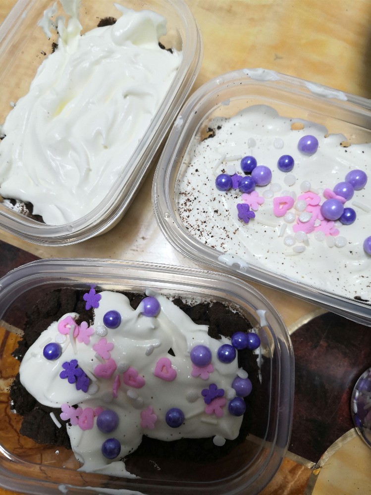 后来给孩子们做了巧克力碎饼干盒子,他们不爱在盒子里加千层皮,就爱单独吃千层皮,这样我倒是省时间了,不加千层皮,太简单了,只需要打发一下淡奶油就可以了,饼干碎是现成的,写这个帖子,才想起来,饼干碎没有了,得买了,也是有段时间没有吃了,依旧给孩子们撒上了小糖豆,这次是他们自己撒的,边吃边玩的乐趣么,除了开心自然还有满足,挺好,周六就该这么悠闲的度过。
