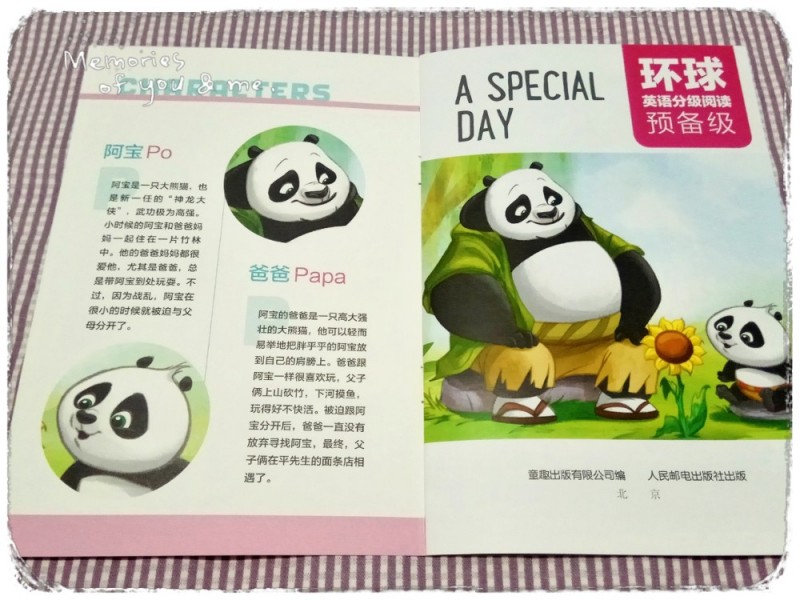 收到了《环球英语分级阅读预备级》系列中的8《A SPECIAL DAY》特别的一天、13《FRIENDS ARE ALL HERE》朋友们都在这儿、19《THE SECRET LIFE OF PETS》宠物的秘密生活、21《BORN TO BE WILD》生来狂野。这四本书的主人公家喻户晓,都是孩子们很喜欢的动物。 ![]() ![]() 《A SPECIAL DAY》首页对主人公阿宝Po和爸爸Papa简短的做了一个介绍,阿宝是一只可爱的大熊猫,武功非常高,小时候的阿宝和爸爸妈妈住在一起,非常快乐,爸爸妈妈都非常疼爱阿宝,由于战乱,阿宝和父母分开了,爸爸一直没有放弃寻找阿宝,最终找到了阿宝。阿宝非常喜欢和爸爸在一起的每一天,父子俩上山砍竹,下河摸鱼,一起造房子,一起找花,这本书共有3处NOTES笔记,每处NOTES下面都是句子,分别是(dry off 弄干、take a rest休息一下、go home回家)这本书前后中英文对应翻译,最后一页还有WORDS,单词表中的粉色单词都是高频单词,粉色标注会格外醒目。 ![]() ![]() ![]() ![]() 《FRIENDS ARE ALL HERE》首页介绍了亚历克斯Alex,麦尔曼Melman,朱利安和莫里斯Julien and Maurice,马达加斯加的企鹅Penguins。书中这几个小伙伴图像刻画的非常可爱,把小动物充分拟人化,这本书介绍了这几个小动物们的大概自身情况。 ![]() ![]() ![]() ![]() 《THE SECRET LIFE OF PETS》书中有三个主人公,他们分别是麦克Max,凯蒂Katie,杜老大Duke。麦克是一个幸运的狗狗,它有一个爱它的主人凯蒂,凯蒂每天都去上班,但是一想到可爱的麦克,凯蒂就干劲十足,最后出现的杜老大是一个幸运的狗狗,因为它遇到了凯蒂,被凯蒂带回去收养,拥有温暖的家。 ![]() ![]() ![]() ![]() 《BORN TO BE WILD》讲述了马蒂过生日,大家都来给它庆祝,马蒂的最大愿望是能够到野外去,最后它逃离了动物园,小伙伴都出去寻找它,等找到马蒂的时候很多警察包围了它们,阴差阳错它们最后来到了野外。 ![]() ![]() ![]() ![]() 《环球英语分级阅读预备级》系列图书首页都是对主人公的介绍,也会根据阶梯的级别,页码里面的笔记词汇量增加,书本末尾还有每页英文的对应翻译,最后一页都有词汇量的汇总,视频学习还有听、跟读模式,自由选择,锻炼孩子的口语。很不错的系列书籍,相信孩子坚持下来英文一定会不错的。 本作品未经作者许可不得转载,转载请征求作者意见。擅自转载使用,将保留追究其法律责任的权利! |
