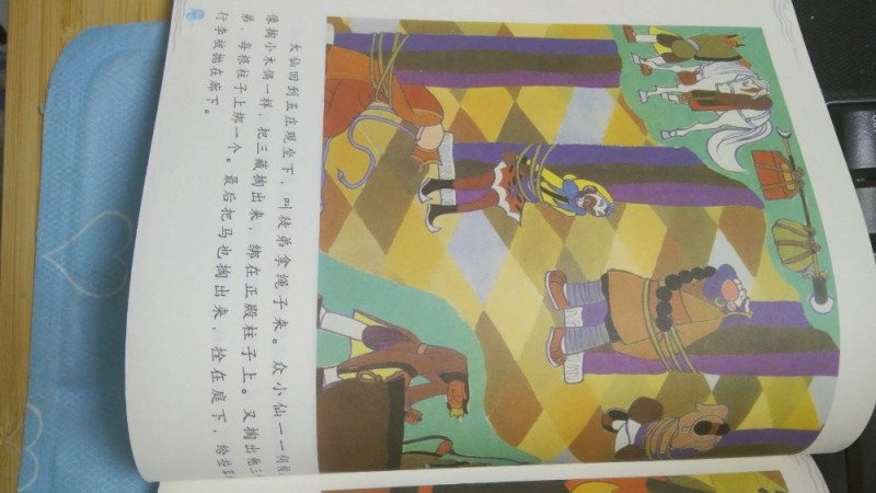 本书的绘画都是美术大师的作品,色彩绚丽精美,把故事内容表现得惟妙惟肖,大篇幅的绘画作品孩子们更加喜欢了。插画的下边是一段故事文字,都是改编的非常优美,一种艺术的享受。
