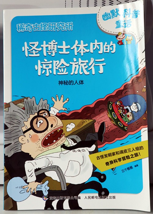 看到封皮就知道我们收到的这本叫做:《怪博士体内的惊险旅行》 首先看它的封面设计,非常的具有辨识性,一个头大大的带着眼镜、穿着白大褂的男士汗流满面地倒在椅子上,他的身后有一个飞行器。这是怎么回事呢? 看了里面的内容,我们可以知道这就是怪博士了,飞行器里是三个小学生希希、奇奇、鼓鼓,他们要做什么去呢? 原来这个故事是这样的——怪博士乱吃东西,腹痛难忍,他又不想去医院,怎么办?情急之下,几个孩子乘坐神奇穿梭机来到了怪博士的体内,发现了他腹痛的根源,还在怪博士的消化系统内做了一次惊险旅行。 本书讲述的知识点:人体内部各个器官的功能。 古怪发明家和调皮三人组奇异科学冒险之旅![]() 看目录就知道这本书主要传达给小读者怎样的知识点了 ![]() 这是书中的主要人物 通过绘画的形式表现出来,更容易让孩子们接受哦! ![]() 神奇而又聪明的身体 这里把人体的主要器官都画出来,然后讲解它们的主要作用,让孩子记得更牢固哦! 但是怎样把这些器官用故事的形式表现出来呢? ![]() ![]() 这里就通过怪博士吃了很多垃圾食品,引发了肚子疼,三个小朋友坐着飞行器去了怪博士的肚子里一探究竟。 ![]() ![]() ![]() 在怪博士的肚子里,孩子们从嘴巴进入,然后一路直下,看到了心脏、肝肺、肾,一直到了大肠小肠,找到了博士肚子疼的原因。 ![]() 这图描述的惟妙惟肖,人体的结构看起来清晰了然。 ![]() ![]() 故事结束后,还有知识对对碰,让孩子对书中的主要知识点做一下回顾,巩固一下学到的知识 ![]() ![]() ![]() 桐桐开学的生物课第一课就是人体,看来这本书能帮助孩子提前预习功课呢!