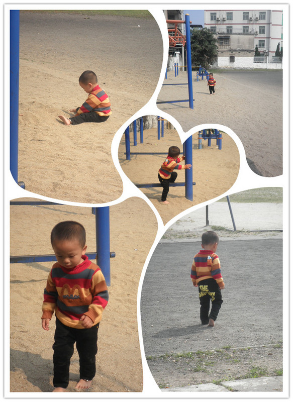 到了体育场之后,我就赶快把三三放下来,叫他去跑步,也不知道今天怎么他就是不想动,到了运动区,他就要求要脱鞋子脱袜子的,没办法就给他脱了,我就跟他说,那你就自己玩,麻麻在旁边看着