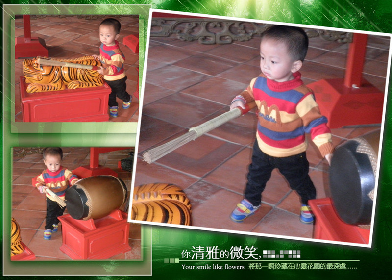 一进去,三三就直奔大厅,肯定是又是敲敲打打的。他很喜欢打鼓,那些保安叔叔都认识他,他要玩什么都被允许了,所以他很喜欢去大厅,不过有些东西不能动的,我坚决不让他动的。