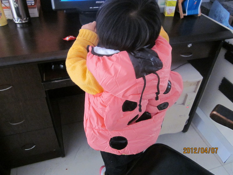 天气开始变暖了,可是发现宝贝没有合适现在穿的衣服,外套很多,可是都是厚的,朋友来玩,她的女儿穿着一件坎肩,我看着挺好,主要是挺适合现在穿的,所以我就觉得去给可馨也买一件,说买就买,中午我就去了,因为离买衣服的地方很近,在我们一个市场里,和邻居一起去的,一转才知道现在几乎 没有卖的了,都开始上单衣服了,好不容易才找到一家,样式还不少,邻居一眼就相中了这款金龟子的坎肩,说很漂亮,一开始我还不是很喜欢,因为我不喜欢它后面有个翅膀的装饰,觉得很罗嗦,其他的地方还好,所以就决定拿回来了,当时宝贝在睡午觉,醒来后给她一穿,觉得还是很不错的,小孩子嘛,就是要装饰才好看,本来以为买的不算便宜,结果回来后淘宝看了下,都好贵呢,我买的是三十八元,淘宝上看着漂亮点的都要七八十,甚至一百多呢, 呵呵,不多说了,上图片,看看我家小妞漂亮不 衣衣正面,, 这是背面,有个翅膀 帽子上面还有触角,,, 看我美吧 本作品未经作者许可不得转载,转载请征求作者意见。擅自转载使用,将保留追究其法律责任的权利! 个性签名