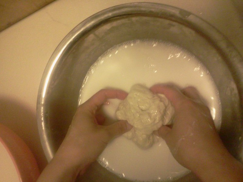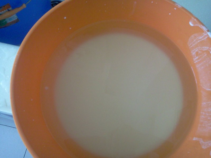 最近北京升温很快啊,天一热,就想吃点凉凉的食品来降降火,我和果都超爱吃凉皮,在外面买的倒也不贵,但老觉得不卫生、不安全,清明那几天放假,我就心血来潮要自制凉皮试一下,在网上百度了不少的做法,现学现做,最后竟然成功了。有心自己做凉皮的亲们看过来啊。 先是弄干面粉,第一次做,我不敢弄太多,怕失败,其实后来发现这么多 已经能做出不少凉皮了。 凉水和面,然后醒半个小时左右,时间嘛,没那么严格,自定,醒多长时间都行。 然后就是揉面了,盆里倒上水,水量为盖过面团的一半,接下来就是不停地揉面,等看到水很白了就把水倒入一个容器内,再倒清水再揉面,然后再把洗面的水倒入容器中。。。。第一遍的时候面团会有点散,没关系,越洗面团会越小越粘。一直这样反复洗个4、5遍,就差不多了。 这时候剩下的面团就是我们常说的面筋了。面筋上锅蒸熟凉透后切成小块备用。 把容器中的水静置3、4个小时,这时候上面会是清水,下面就是沉淀,把上面的清水慢慢倒掉,留一点儿水,用筷子和沉淀一起搅拌成糊状。 找平底盘,底上抹上少许油,然后把面糊均匀地摊在盘子上,锅中放水,水开后把盘子放入,一两分钟就熟了,揭下来就是我们所说的凉皮了,这个过程有点漫长,得一张张地做,糊越少凉皮会摊得越薄。我刚开始的时候糊有点多了,出来的凉皮就有点厚,吃起来口感就有点粘。 最后成品出来了,切后放点黄瓜丝拌好,和外面卖的面相差不多,就是口感有点绵软,不象外面卖的那么劲道,所以我有点怀疑外面卖的是不是添加了什么东西?不过有可能我的技术也有待于改进! 麻酱放得有点多! 本作品未经作者许可不得转载,转载请征求作者意见。擅自转载使用,将保留追究其法律责任的权利! 个性签名