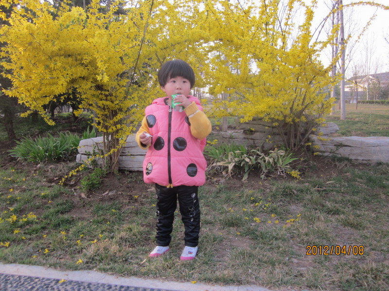 到了那里还真的是不错,先去了儿童游乐园,哇 好多的小朋友都在这里玩,这可高兴坏了可馨,下车后就呼呼的跑了过去,也不说自己累什么的,好久没有爬滑梯了,快点跑过去 还有这个带拐弯的滑梯宝贝也很喜欢 这是游乐场的一角,看到花儿了吗? 在游乐场玩了一会儿,有点儿累了,我就和宝贝商量说我们到处去转一转吧,看这个大广场上有好多的花儿都开了,看看都有什么颜色的,看宝宝认不认识好不好,宝贝很开心的答应了,因为她已经认识了很多种颜色了,而且她也喜欢认颜色,觉得很好玩,要不就是她每次都能答对,受到妈妈的表扬,觉得自己很有成就感吧。嘿嘿,, 于是我们就开始从游乐场哪里出发,到处看看去了,知道我在干什么吗? 我在捡花呢,怎么掉了这么多的小花瓣呀、、、、再到别处看看去, “妈妈,这个红色的是什么花呀?”( 我也不知道呀,)还是再走走吧看看我和桃花谁更美??????? 发现了好多的小石头呀。。。 这个是黄色的迎春花,呵呵,渴了,先喝点果冻好不好。 看这些叶子是那么的绿,是不是能感觉到它的勃勃生机呢? 这个好像是玉兰花吧,在干干的树枝上直接开除这么漂亮的大花朵来,真的是好神奇呀,。 来到了喷泉广场,发现又好多放风筝的呀,宝贝很开心的到处指,这个像什么,那个像什么,还说爸爸怎么不来跟我一起放风筝呀, 蹲下假装自己是个小瓢虫呢。 过了一会儿爸爸来了,拿来了风筝,可是妈妈买的风筝好像不好,飞不太高,所以就只能是宝贝拿着玩玩啦,那也玩的很开心呢,。 这次出游就这样结束了,因为天也快黑了,可是宝贝还意犹未尽,说明天还要来玩。嘿嘿,小孩儿,玩起来就没够了,,,