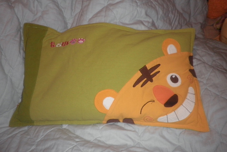 哈哈,我们家也有一样的老虎枕头呢,也是绿色的
