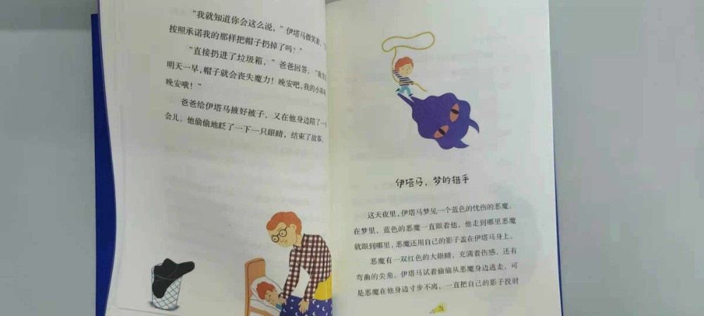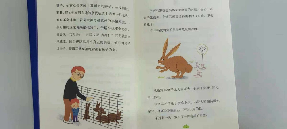 《大作家小童书:伊塔马历险记》是作者大卫•格罗斯曼为他的孩子创作的经典童书!诺贝尔文学奖热门候选人、国际布克奖得主、以色列著名作家。书不是很厚讲了六个有趣的探险故事。这个故事还被改编成舞台剧在欧美各地上演,被开发成儿童教育类游戏,伊塔马形象还被做成了纪念邮票。可见这个故事有多受欢迎了。一起来看看故事内容吧。 故事的小主人公是一个叫伊塔马尔的小男孩,他很喜欢动物甚至还很喜欢不存在的动物,比如独角兽和恐龙。恐龙应该是每个男孩都特别喜欢动物吧,我儿子也让我买了很多恐龙的玩具。不知道他们见到真恐龙是什么反应。伊塔马尔最害怕的动物是兔子。真的是有点与众不同啊。一般都会怕老鼠、蛇之类的。有一天伊塔马尔跟着爸爸妈妈去森林里散步。突然一个可爱的小家伙冒出来跟伊塔马撞了一个满怀。这个小家伙毛是棕色的尾巴很短还长着长长的耳朵和小胡子。大家肯定都猜出来这是什么动物了。小家伙问:你是谁,男孩回答:伊塔马。小家伙还挺庆幸自己没有遇到小孩。这两位是什么眼神儿啊。经过交流他们发现小孩也没有那么坏、兔子也没有那么坏。他们都不在害怕彼此了。他们一起玩松果一起聊天,兔子交给他怎么动耳朵,伊塔马教兔子什么是扣子、为什么穿衬衣。他们成了好朋友。伊塔马每次跟父母去森林都会跟兔子朋友见面。 很多孩子都怕自己睡觉,因为在黑夜里他们总是能想出各种各样的小怪物出来。伊塔马就被自己睡梦中的蓝色忧伤的恶魔给吓坏了。后来爸爸给恶魔设置了一个梦陷阱。是一个帐篷形状的梦陷阱。中间支着一根扫把,爸爸在扫把上拴上了一根绳子。如果恶魔出现,伊塔马拉绳子就可以了。伊塔马变身成为驱赶恶魔的猎手。被捉到的恶魔像小猫一样小。他们经过协商达成了一致,小恶魔只出现在梦的边缘。 伊塔马总是又很多稀奇古怪的想法。家里人也总是很认真很积极的去配合。保护了孩子的童心和想象力。父母也是非常了不起的。伊塔马看到爸爸妈妈都收到了信,他有希望能收到。爸爸就鼓励他写信,结果他想把自己当成信寄个爸爸妈妈。爸爸很配合的用信纸和信封把伊塔马包起来。在公交车上他们都觉得伊塔马太奇怪了。但是他和爸爸依然完成了从邮局寄信的过程。 爸爸妈妈给了孩子充分的尊重和理解。这也是我想要的亲子关系。