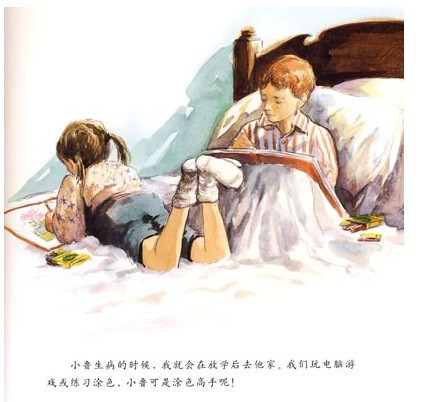 本书故事以小鲁的同学为第一人称,叙述徐徐拉开帷幕;小女孩和小鲁是住在同一条街上的邻居,他们总是形影不离;小鲁是个有着先天性心脏病的孩子,随着时间的流逝,小鲁的心脏病日益严重,最终故去了,小鲁的离去,把悲伤留给了小女孩和其他同学,于是,大家试图一起找到一种可以纪念小鲁的方式,来抹平内心的创伤。随着年龄的增加,我们慢慢长大了,不时会收到师长、亲友离开的消息越来越频繁,心里的痛也越来越频繁。是的,生命终会归于尘土,我们虽有准备,可当这些消息真的降临于身时,我们还是难以释怀。 本书的绘画很精美,罗纳德·希姆勒,美国著名插画家,大学主修绘画,他擅长以流畅的铅笔线条勾勒故事的场景和人物,再以水彩晕染营造故事动人的氛围。他与邦廷女士合作过许多本图画书,其中包括《小鲁的池塘》、《爷爷的墙》、《开往远方的列车》、《我想有个家》等。 这个温柔的故事诉说了友谊、失去和希望……这本简单的小书试图说明,从朋友、家人那儿得到支持和美好的记忆都同样令人欣慰。 ![]() ![]()